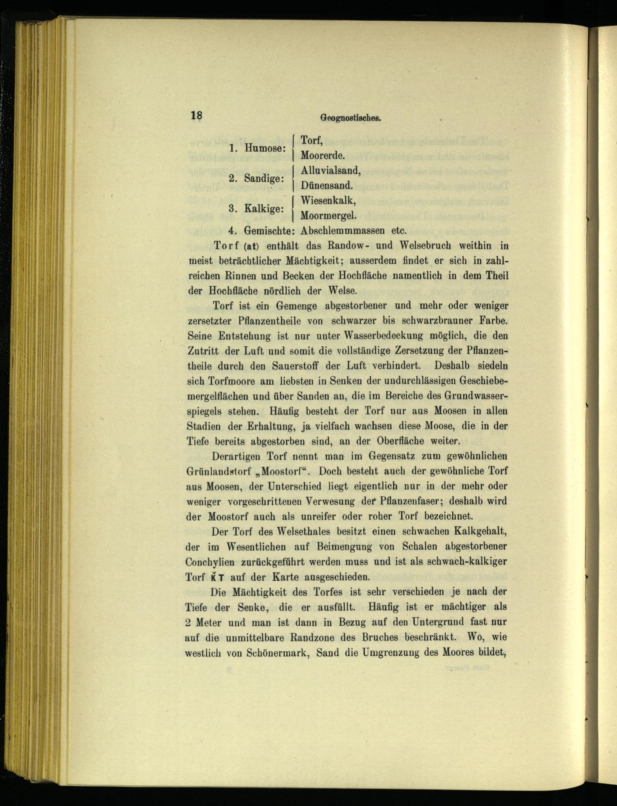 Torf(at) enthält das Randow- und Welsebruch weithin in meist beträchtlicher Mächtigkeit; ausserdem findet er sich in zahlreichen Rinnen und Becken der Hochfläche namentlich in dem Theil der. Hochfläche nördlich der Welse.