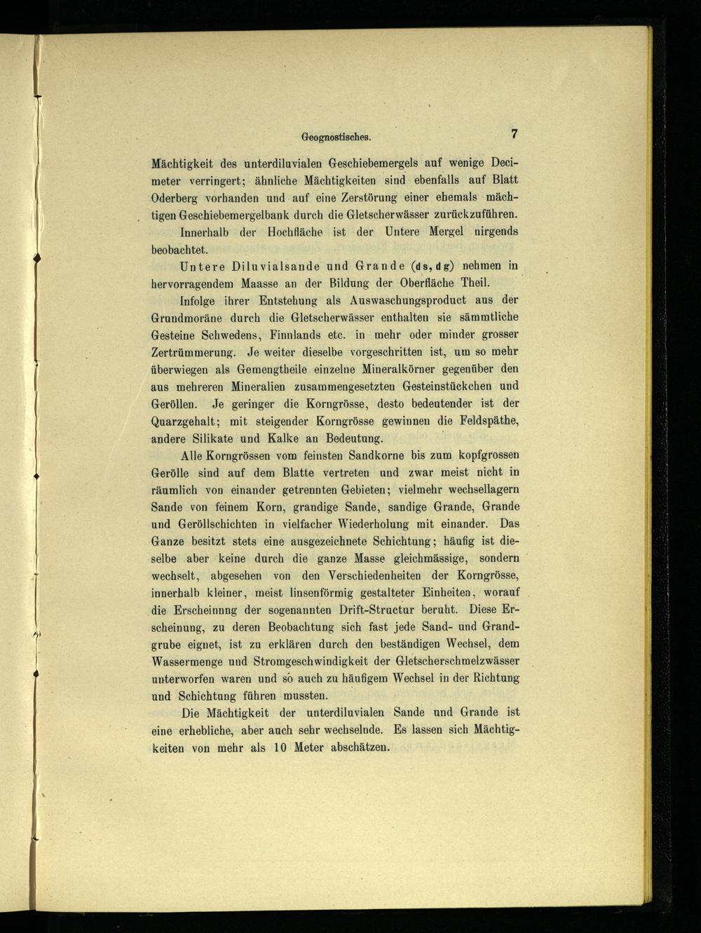 Die Mächtigkeit der unterdiluvialen Sande und Grande ist eine erhebliche, aber auch sehr wechselnde. Es lassen sich Mächtigkeiten von mehr als 10 Meter abschätzen.