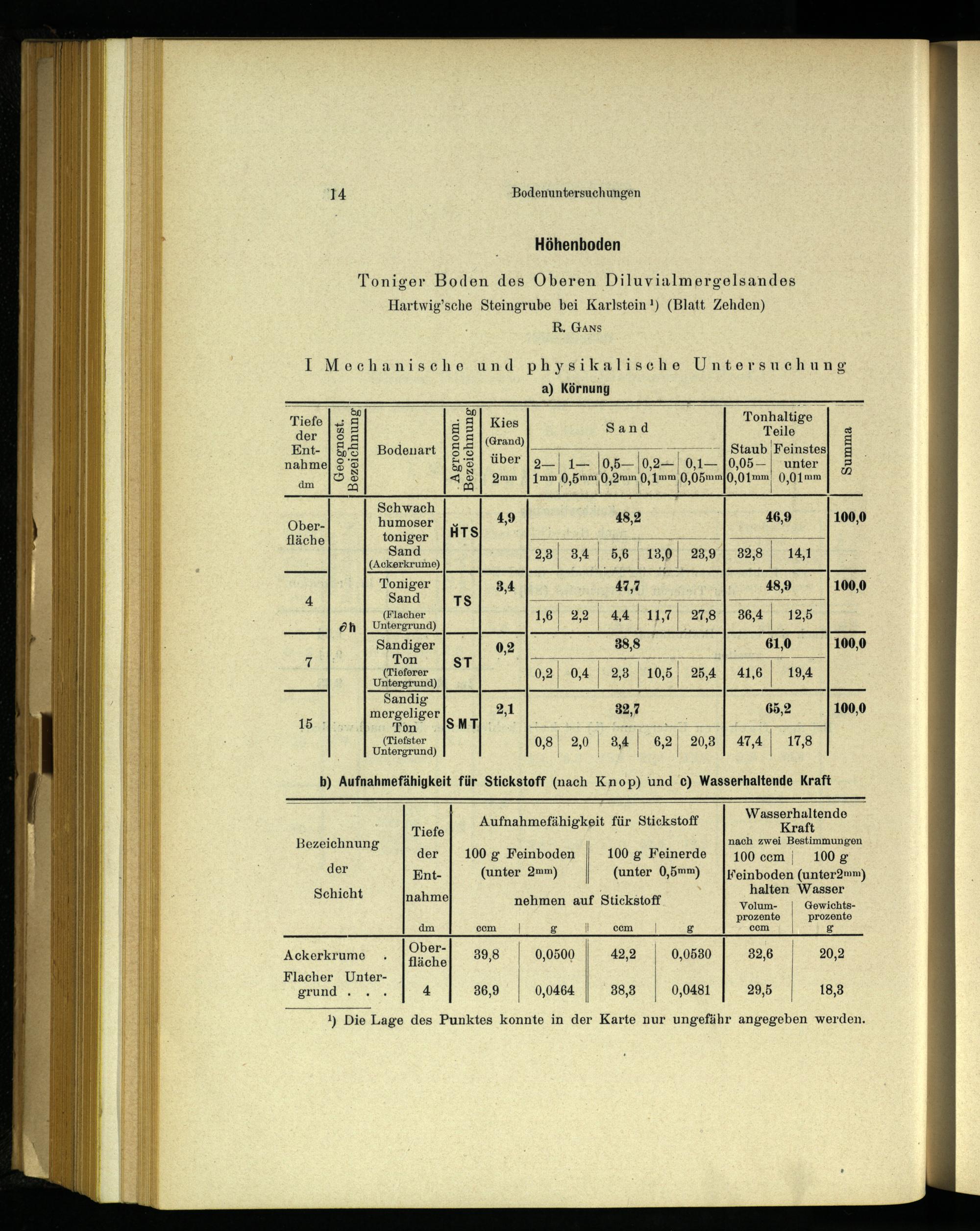 b) Aufnahmefähigkeit für Stickstoff(nach Knop) und c) Wasserhaltende Kraft