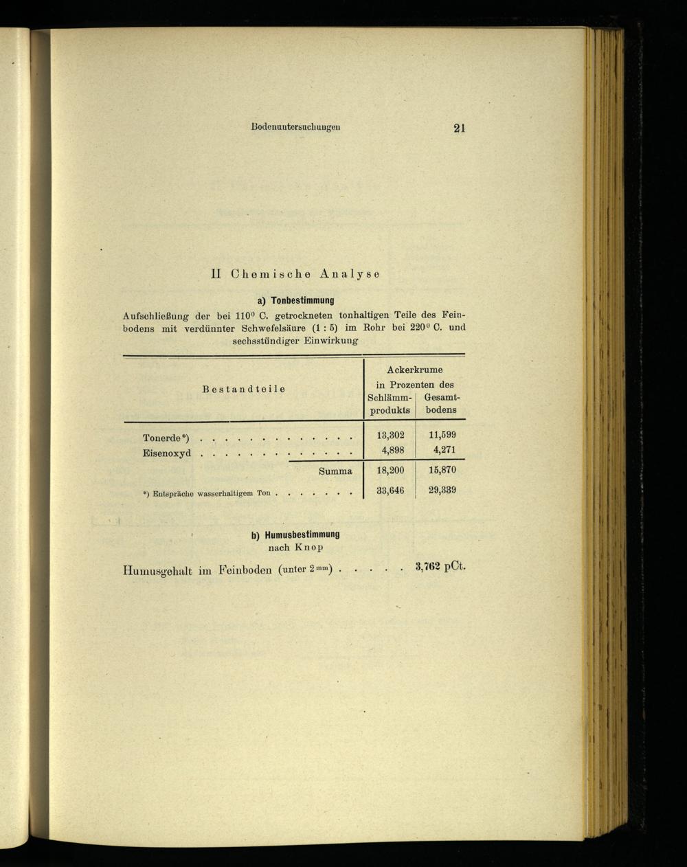 a) Tonbestimmung Aufschließung der bei 110° C. getrockneten tonhaltigen Teile des Feinbodens mit verdünnter Schwefelsäure(1:5) im Rohr bei 220° C. und sechsstündiger Einwirkung