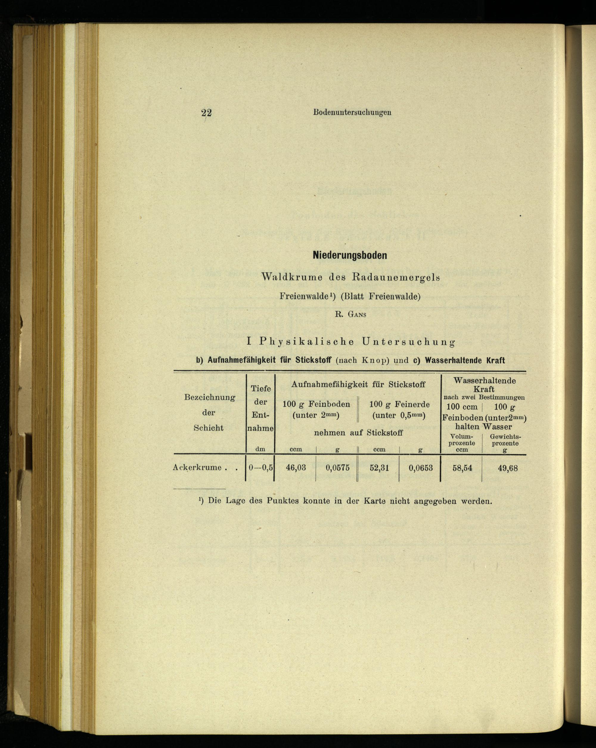 I Physikalische Untersuchung b) Aufnahmefähigkeit für Stickstoff(nach Knop) und c) Wasserhaltende Kraft