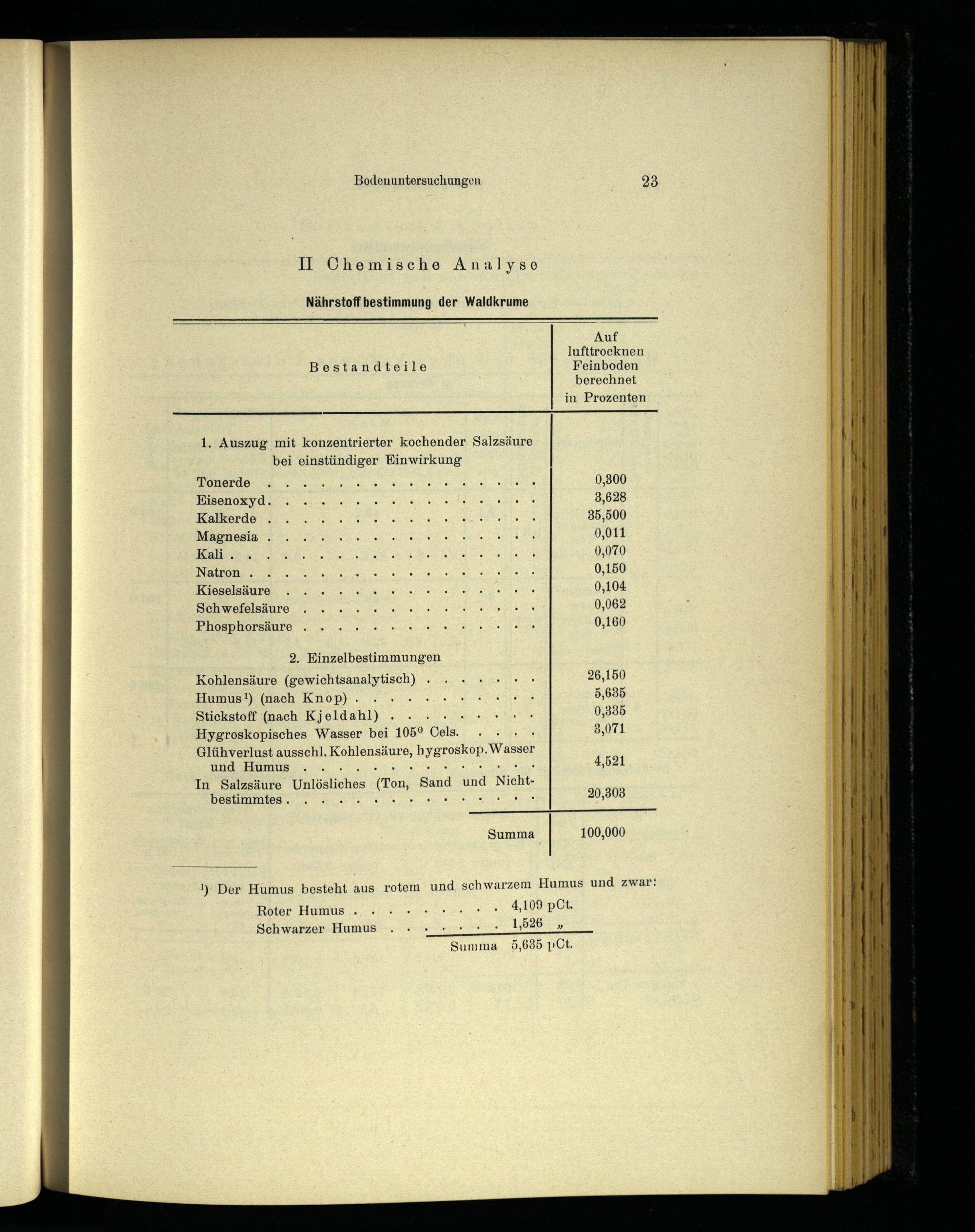 1, Der Humus besteht aus rotem und schwarzem Humus und zwar: 4,109 pCt. 1,526.