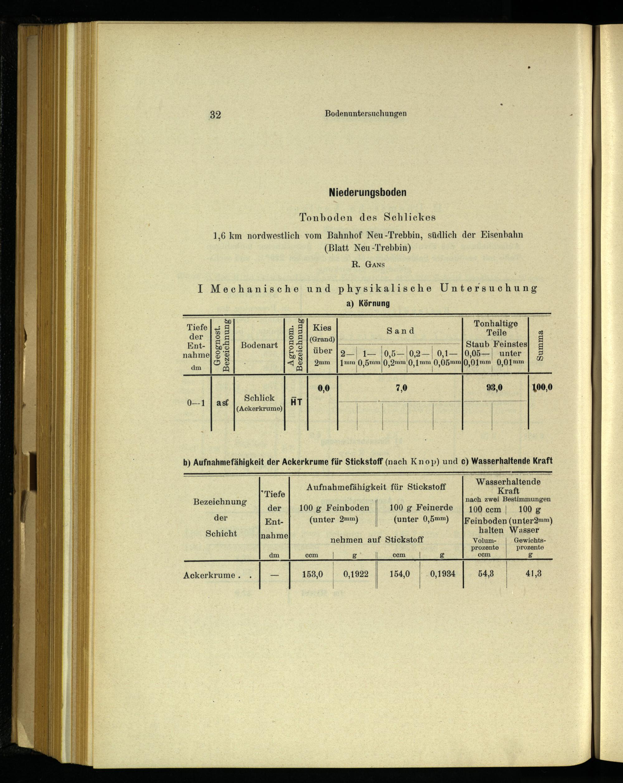 b) Aufnahmefähigkeit der Ackerkrume für Stickstoff(nach Knop) und c) Wasserhaltende Kraft
