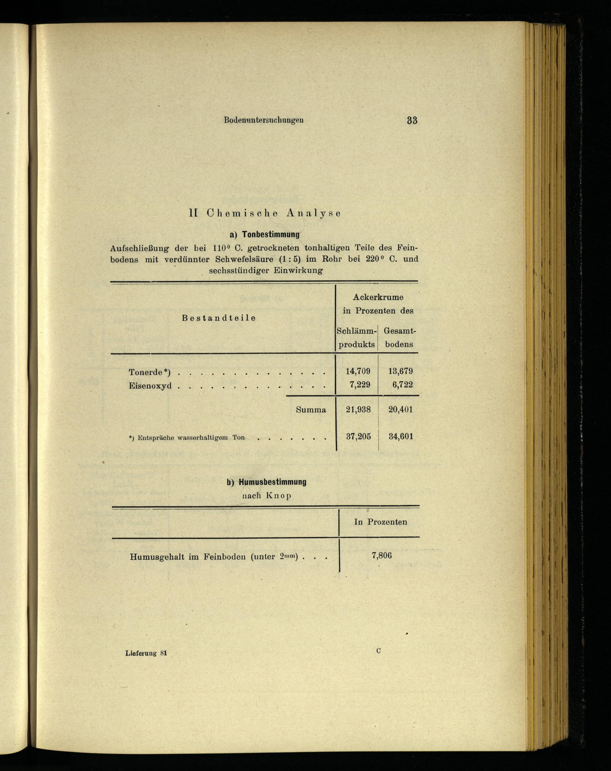 Aufschließung der bei 110° C. getrockneten tonhaltigen Teile des Feinbodens mit verdünnter Schwefelsäure(1:5) im Rohr bei 220° C. und