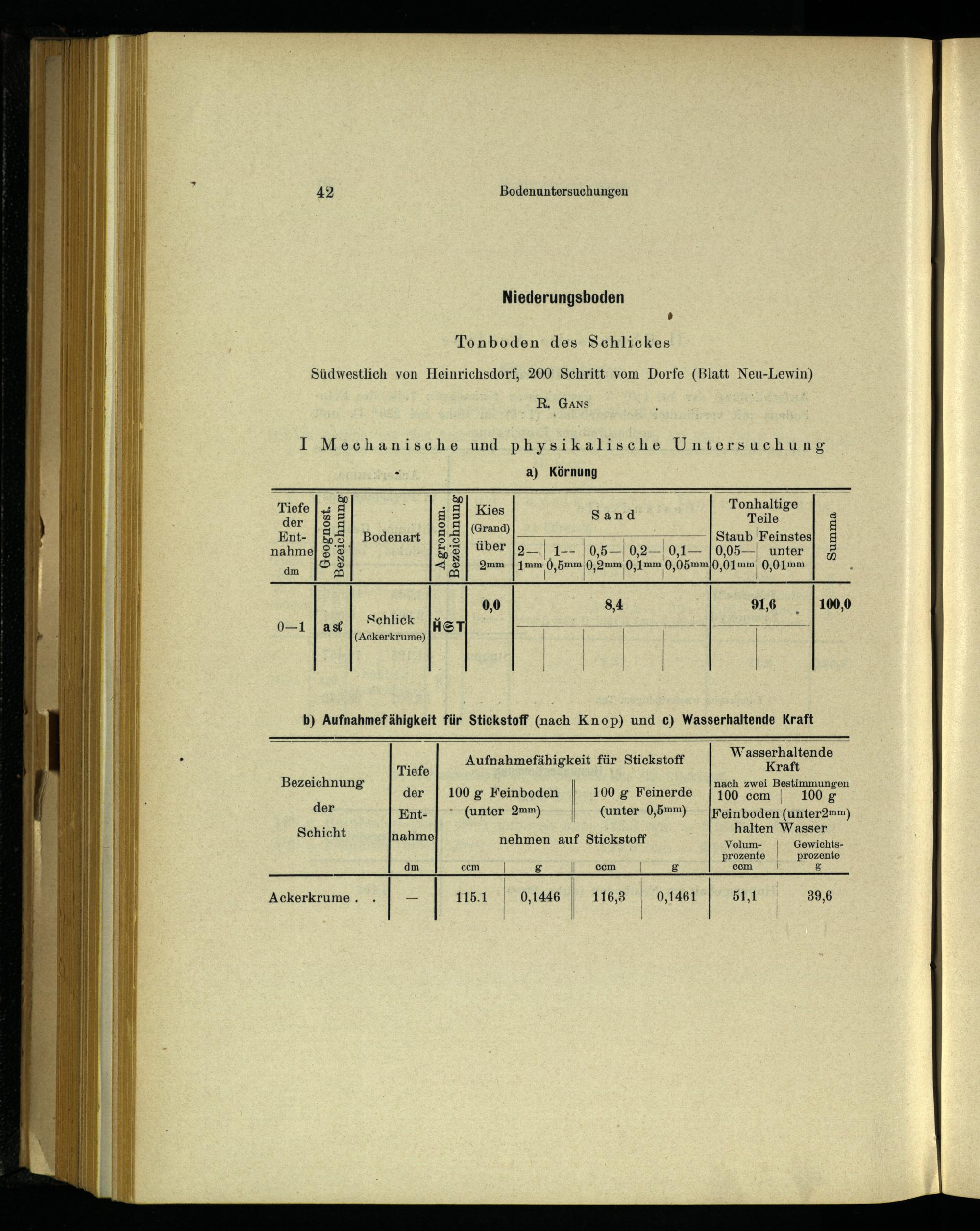 b) Aufnahmefähigkeit für Stickstoff(nach Knop) und c) Wasserhaltende Kraft