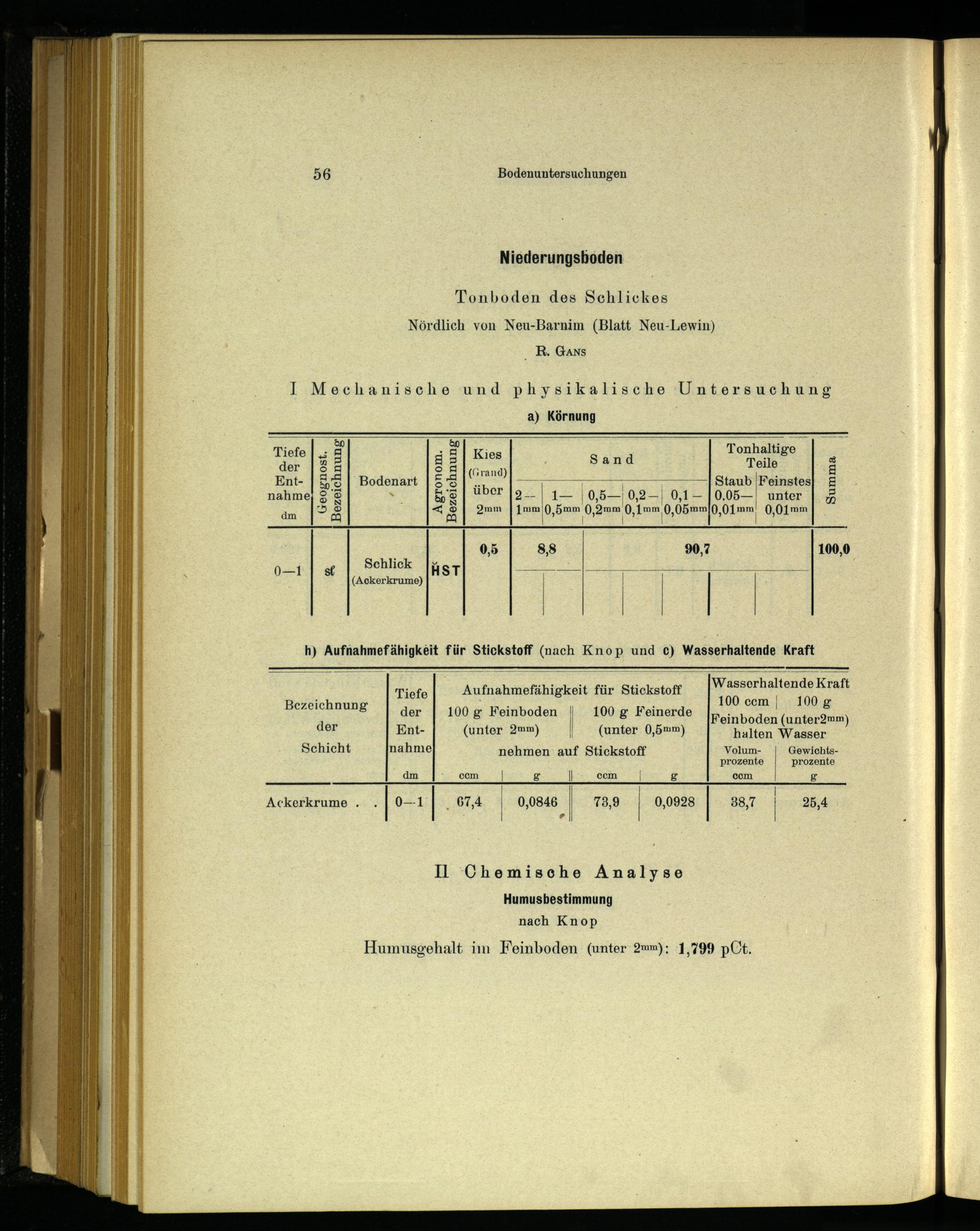 Aufnahmefähigkeit für Stickstofr|" asserhaltende Kraft a, E 100.ccm| 100& 100 g Feinboden| 100g Feinerde x Feinboden(unter2mm) (unter 2mm) l(unter 0,51mm)
