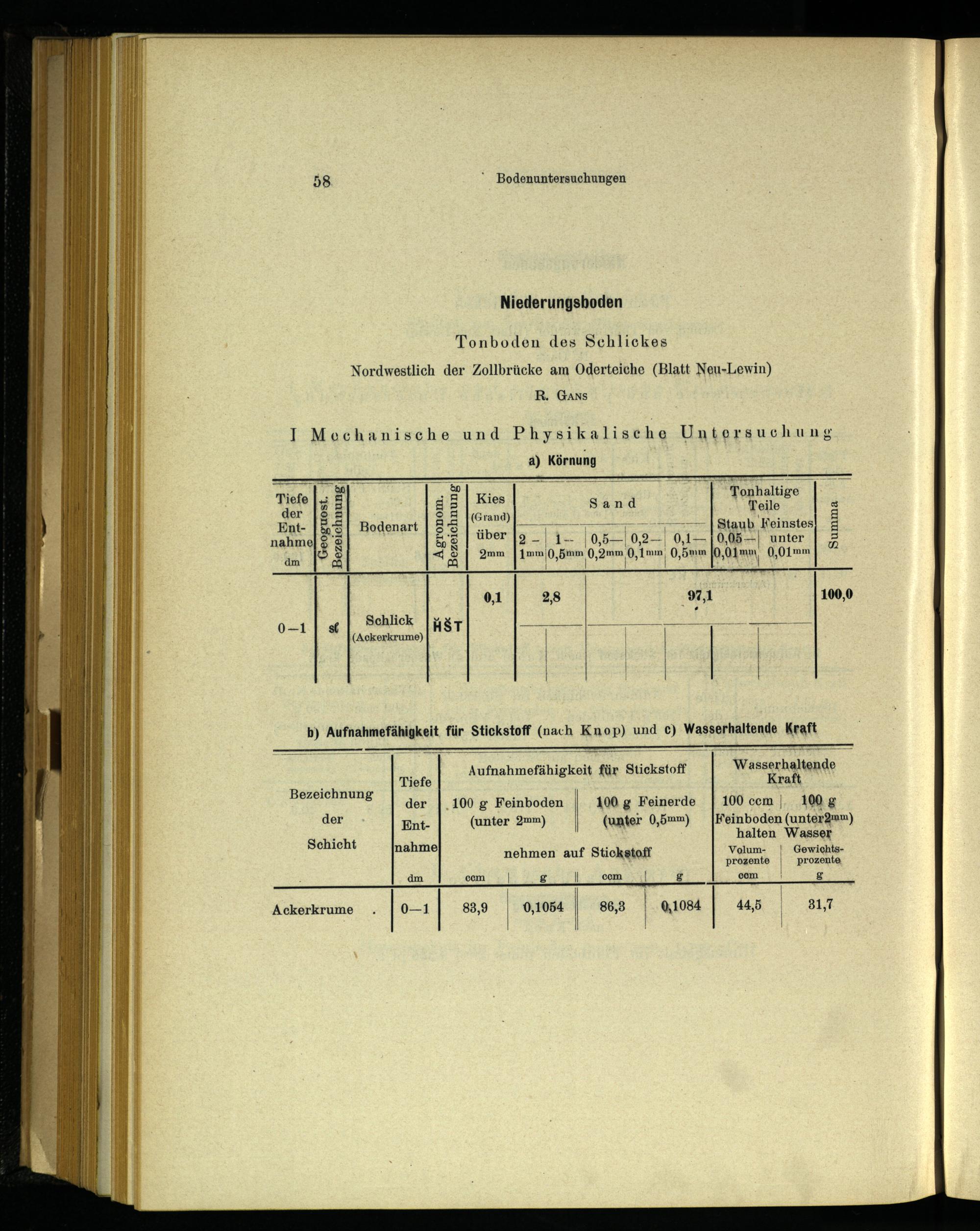b) Aufnahmefähigkeit für Stickstoff(nach Knop) und c) Wasserhaltende Kraft