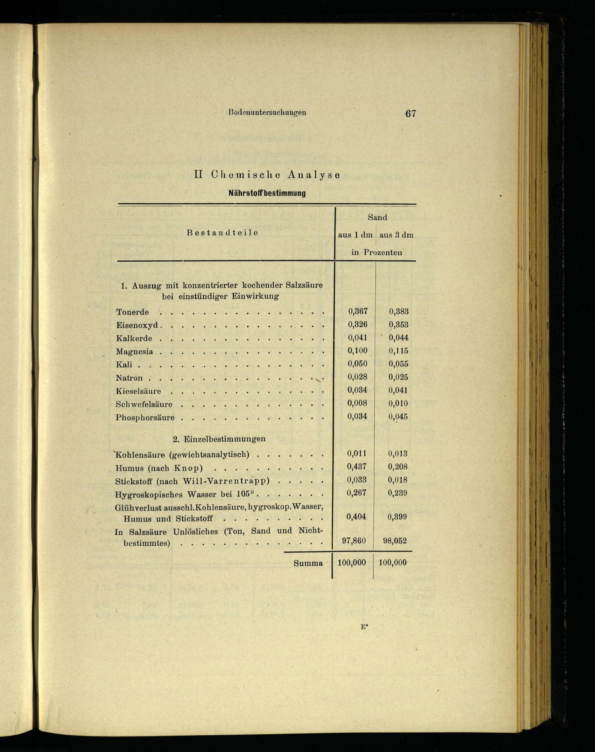 “Kohlensäure(gewichtsanalytisch).....+ 0,011 0,018 Humus(nach:Knop);.... N 0,437 0,208 Stickstoff(nach Will- Yarront2 Con) KR rw wi 0,0833 0,018 Hygroskopisches Wasser bei 105°.....+ 0,267 0,239
