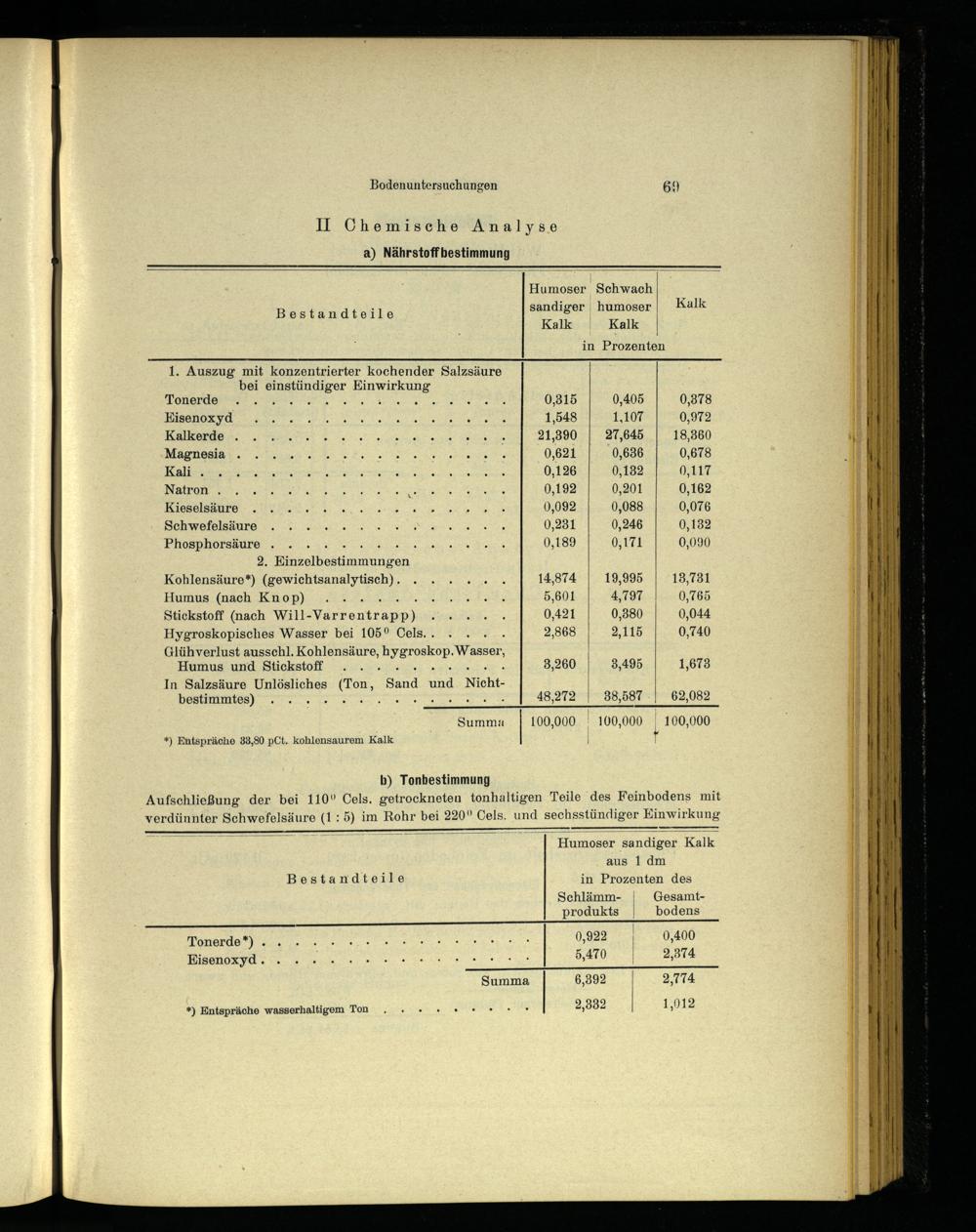 Glühverlust ausschl. Kohlensäure, hygroskop. Wasser, Humus und Stickstoff:..0 Hl we 3,260| 3,495 1,673 In Salzsäure Unlösliches(Ton, Sand und Nicht-| bestimmtes)... 48,272|