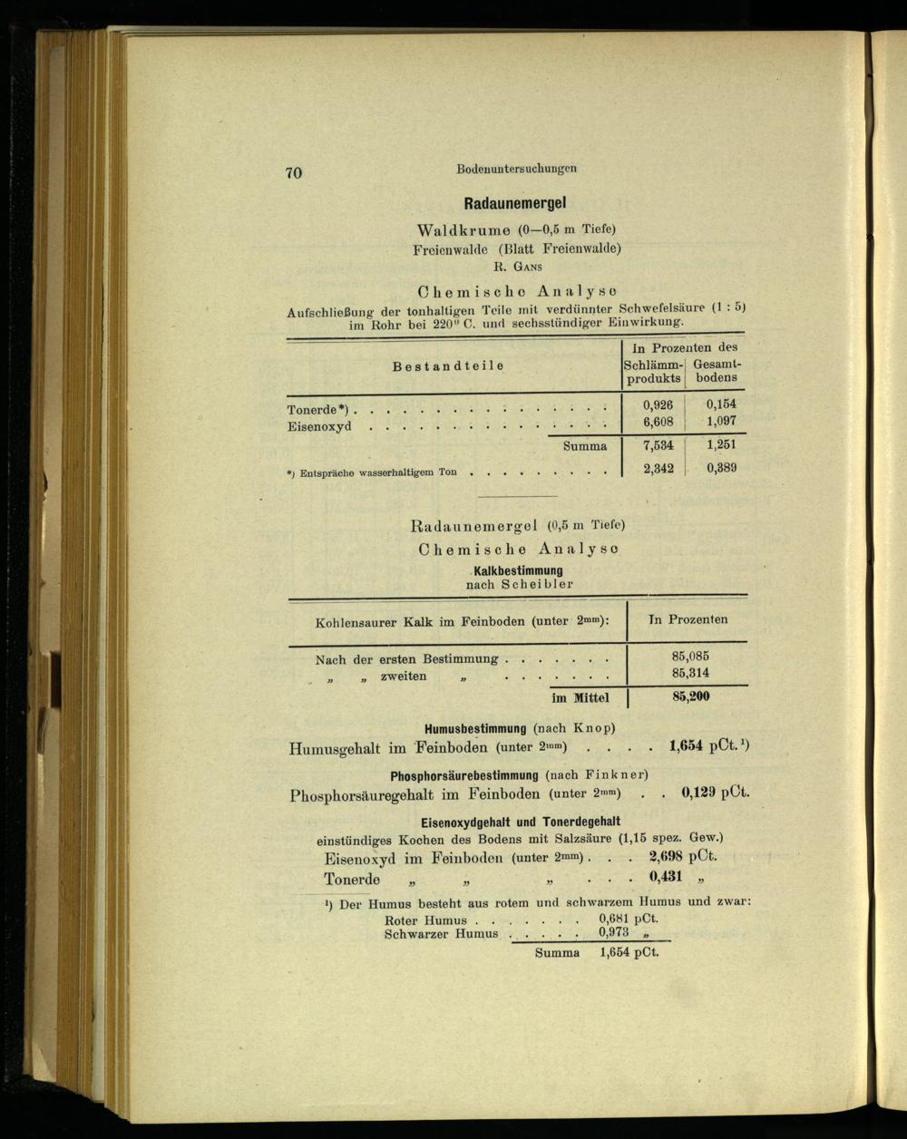 Humusbestimmung(nach Knop) Humusgehalt im Feinboden(unter 2m)..... 1,654 pCt.)