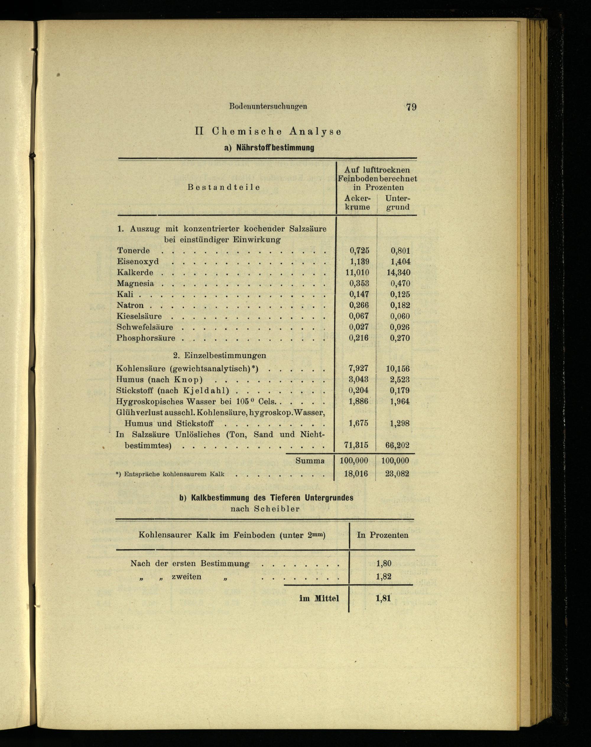 b) Kalkbestimmung des Tieferen Untergrundes nach Scheibler