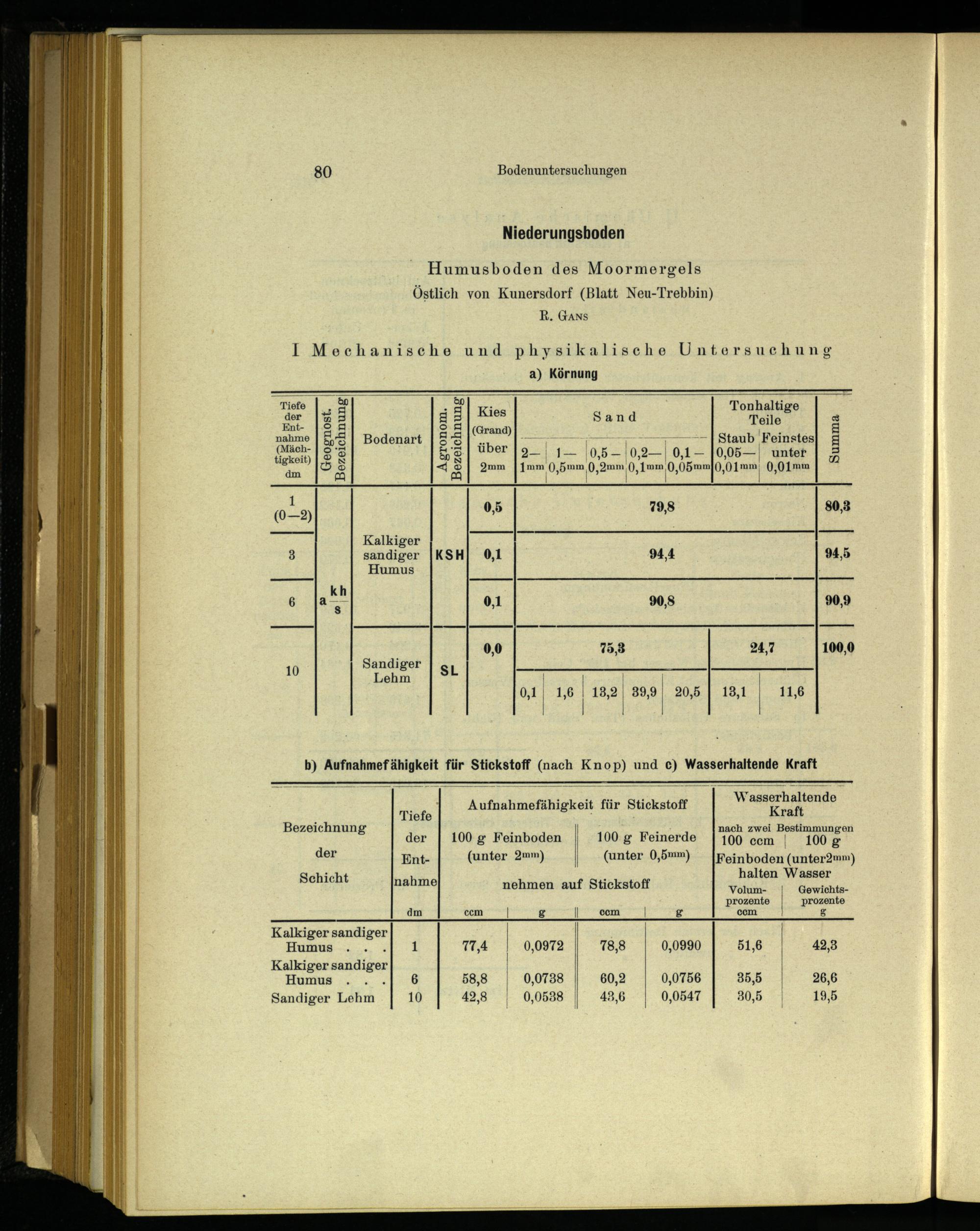 | en _ Wasserhaltende Tiefe Aufnahmefähigtelt für Stickstoff Kraft der| 100 g Feinboden| 100g Feinerde"00 Com. 1 WO. der Ent-(unter 2mm)(unter 0,5mm)|peinboden(unter2mm)