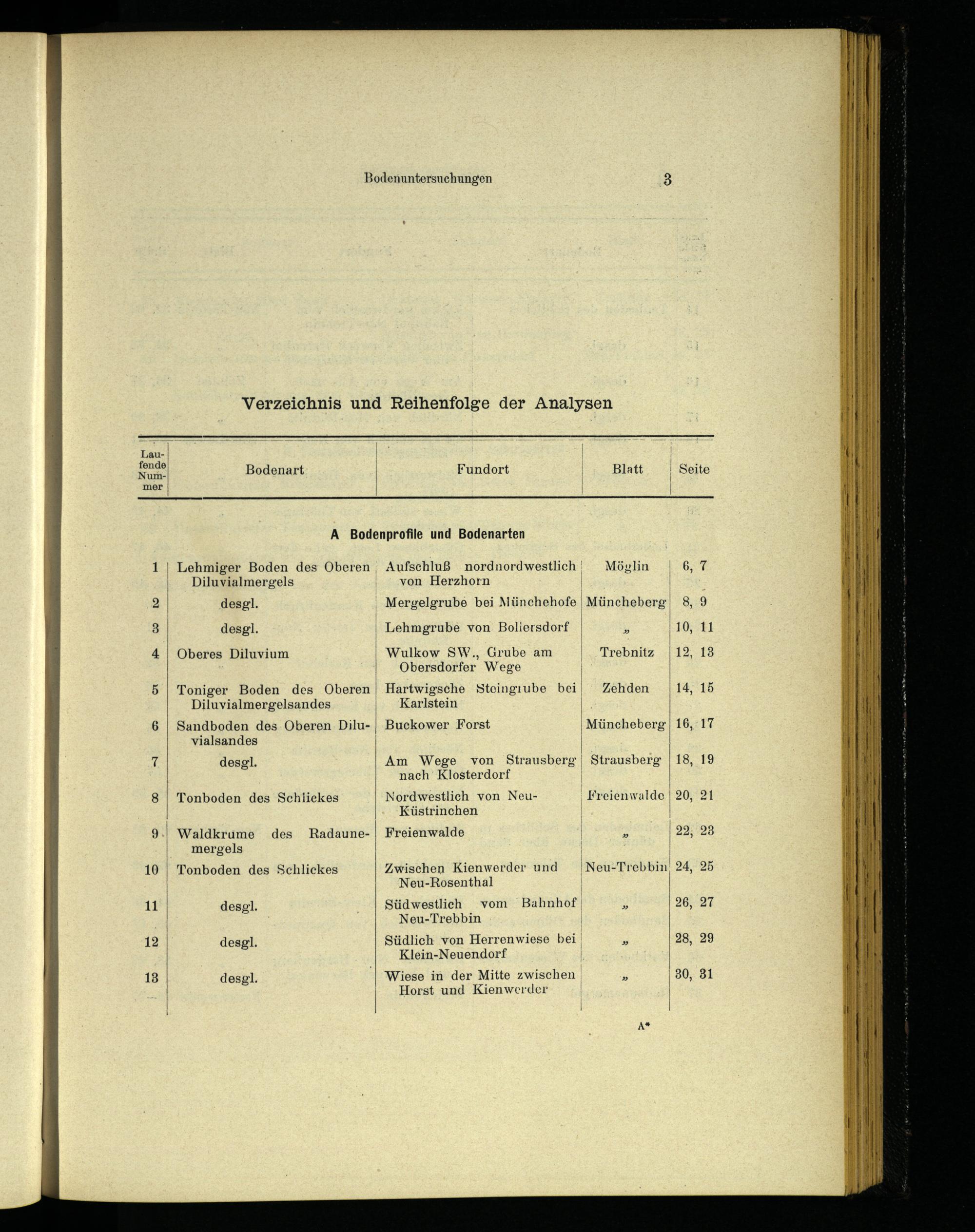 Verzeichnis und Reihenfolge der Analysen