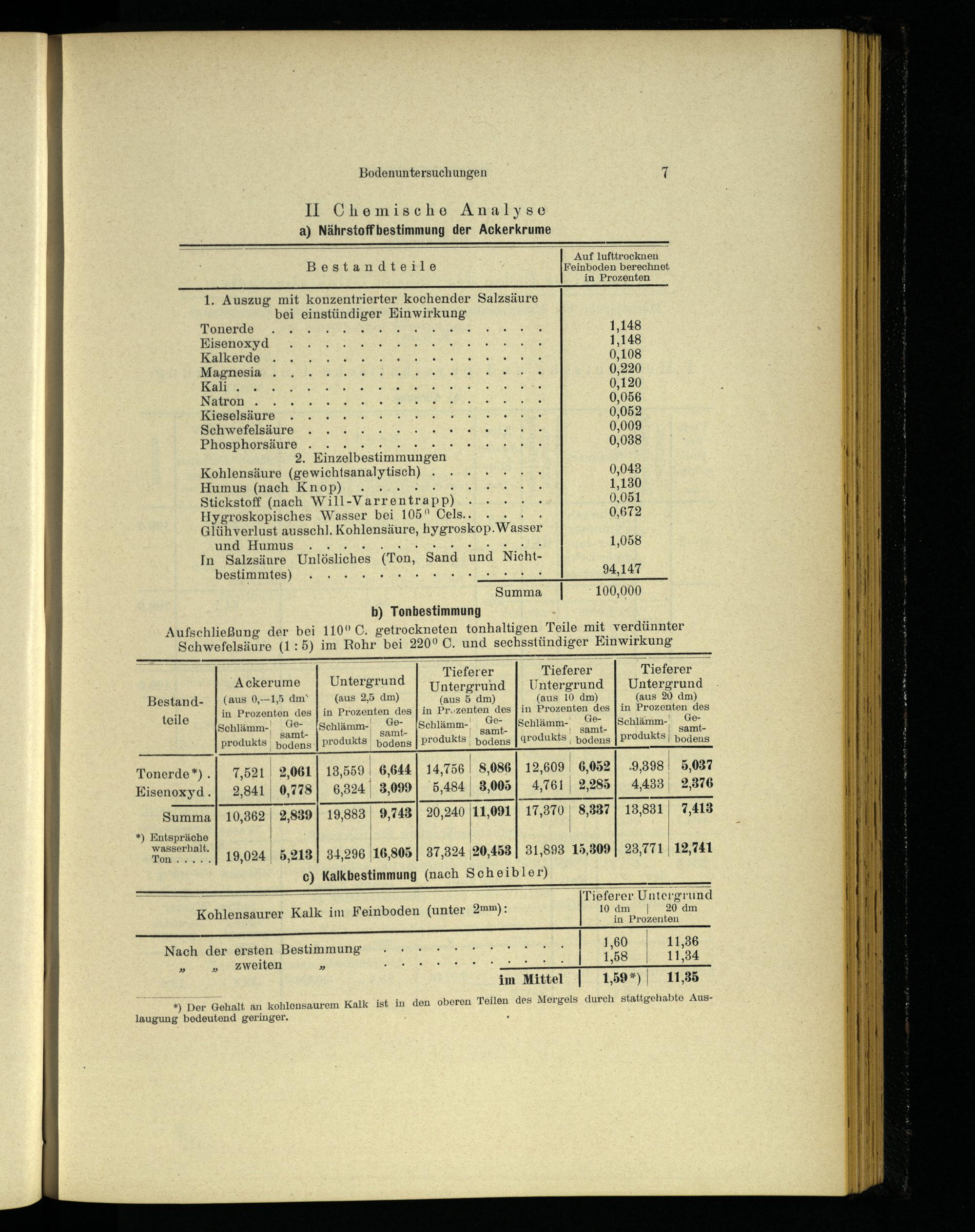 Kohlensäure(gewichtsanalytisch)......+ 0,048 Humus(nach Knop). A 1,130 Stickstoff(nach Will-Varrentrapp) ee 0,051 Hygroskopisches Wasser bei 105° Cels.... 0,672