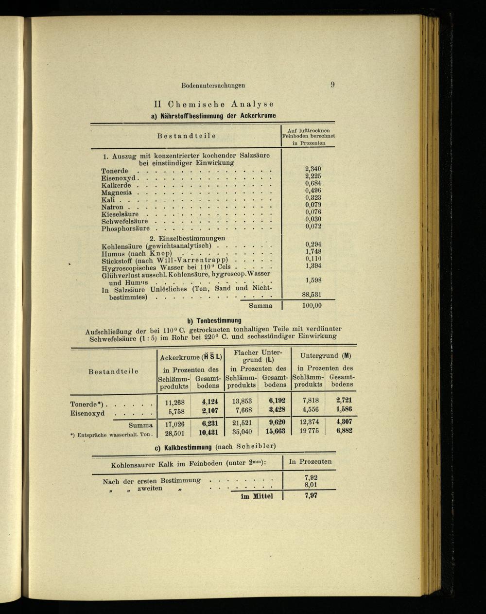 Kohlensäure(gewichtsanalytisch).....- 0,294 Humus(nach Knop).... 4 00. Sn 1,748 Stickstoff(nach Will-Varrentrapp)..+.+ 0,110 Hygroscopisches Wasser bei 110° Cels. 2. 040 1,894 Glühverlust ausschl. Kohlensäure, hygroscop. Wasser