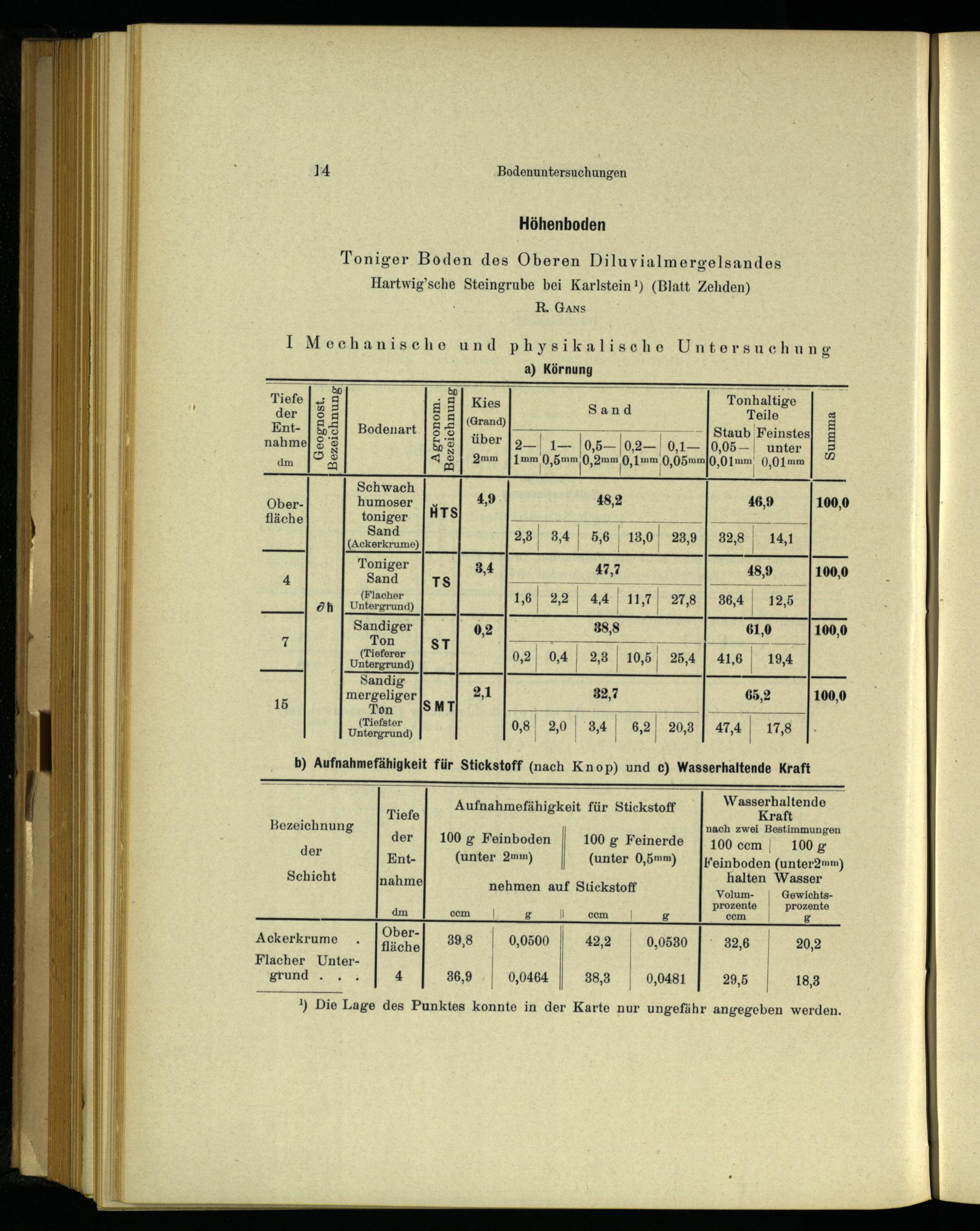 Wasserhaltende Kraft nach zwei Bestimmungen 100 ccm| 100g Feinboden(unter2mm) halten Wasser