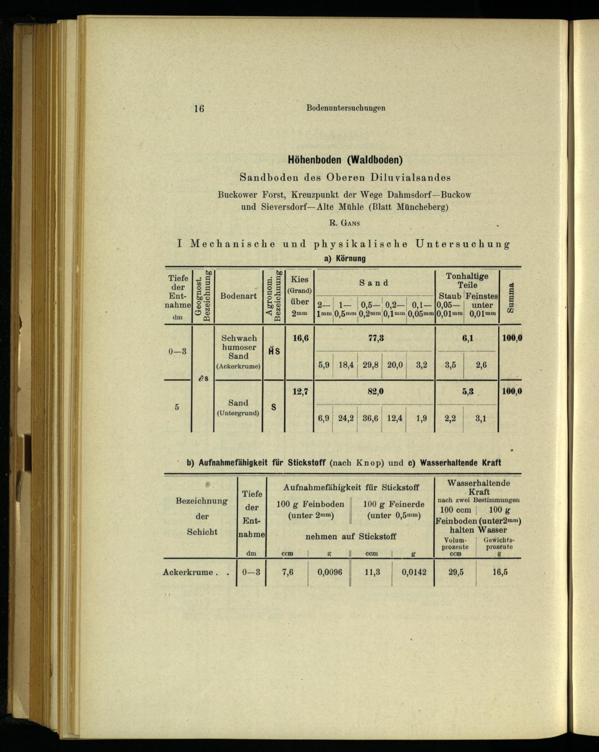 b) Aufnahmefähigkeit für Stickstoff(nach Knop) und c) Wasserhaltende Kraft