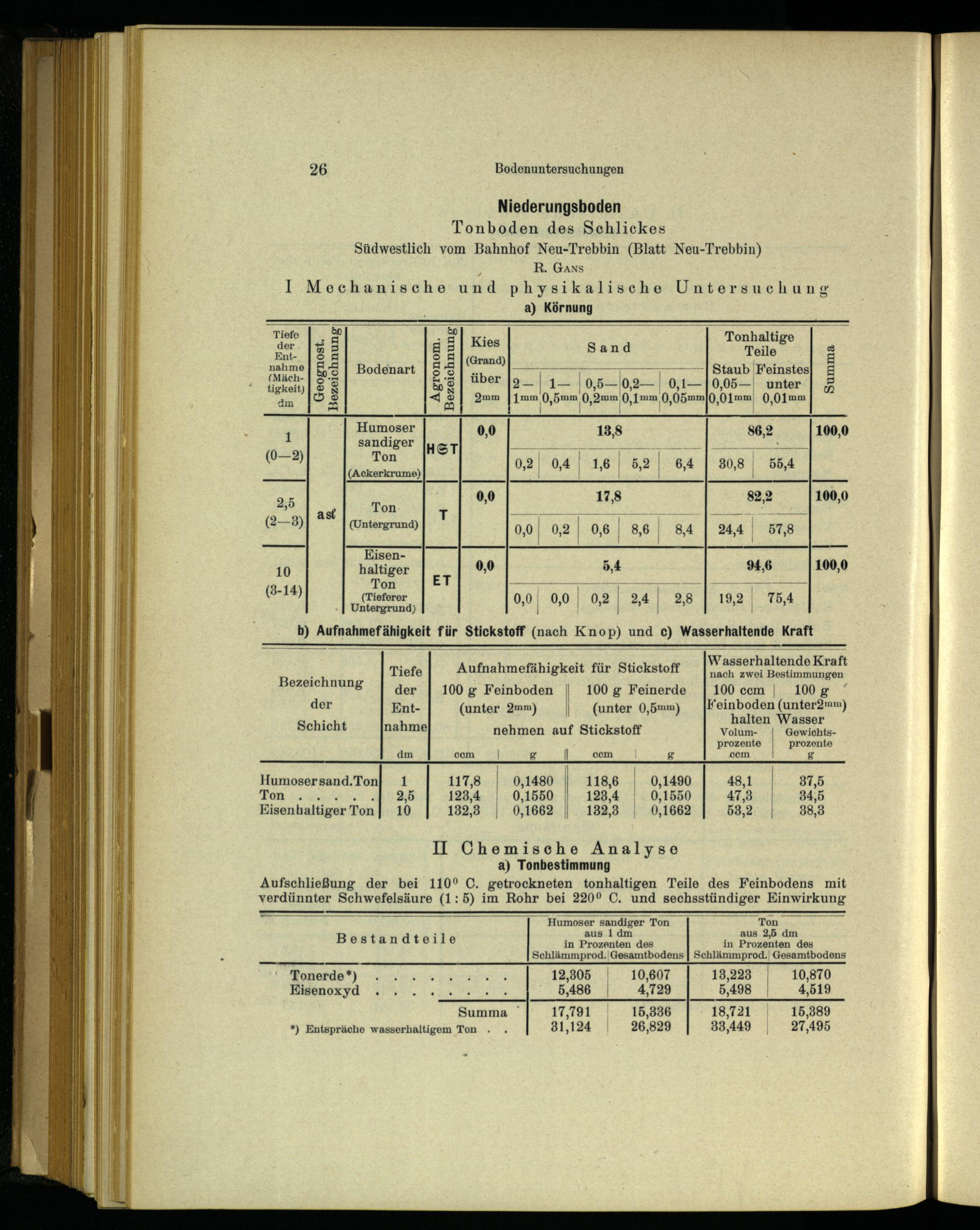 Niederungsboden Tonboden des Schlickes Südwestlich vom Bahnhof Neu-Trebbin(Blatt Neu-Trebbin) S R. Gans I] Mechanische und physikalische Untersuchung a) Körnung