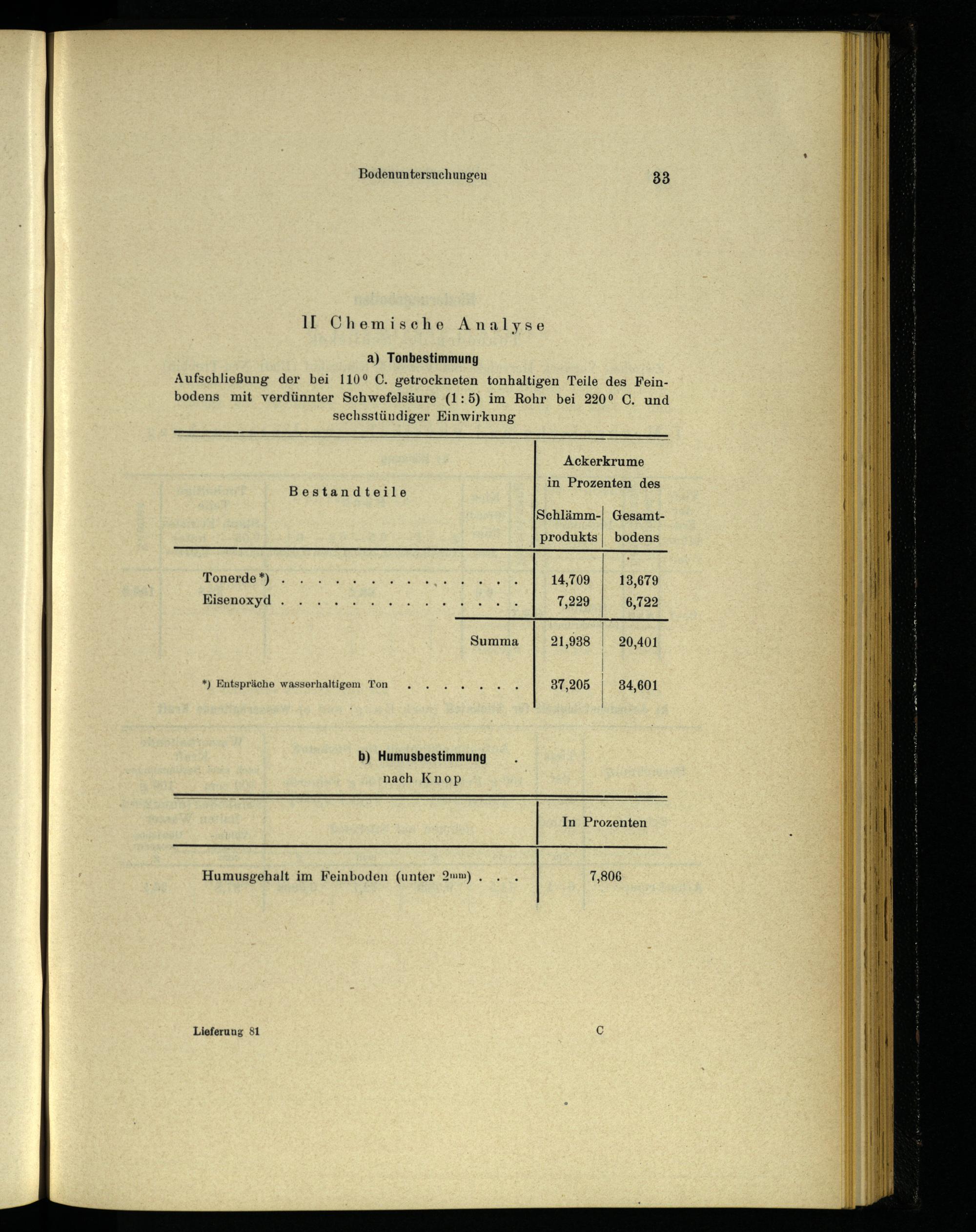 a) Tonbestimmung Aufschließung der bei 110° C. getrockneten tonhaltigen Teile des Feinbodens mit verdünnter Schwefelsäure(1:5) im Rohr bei 220° C. und sechsstündiger Einwirkung