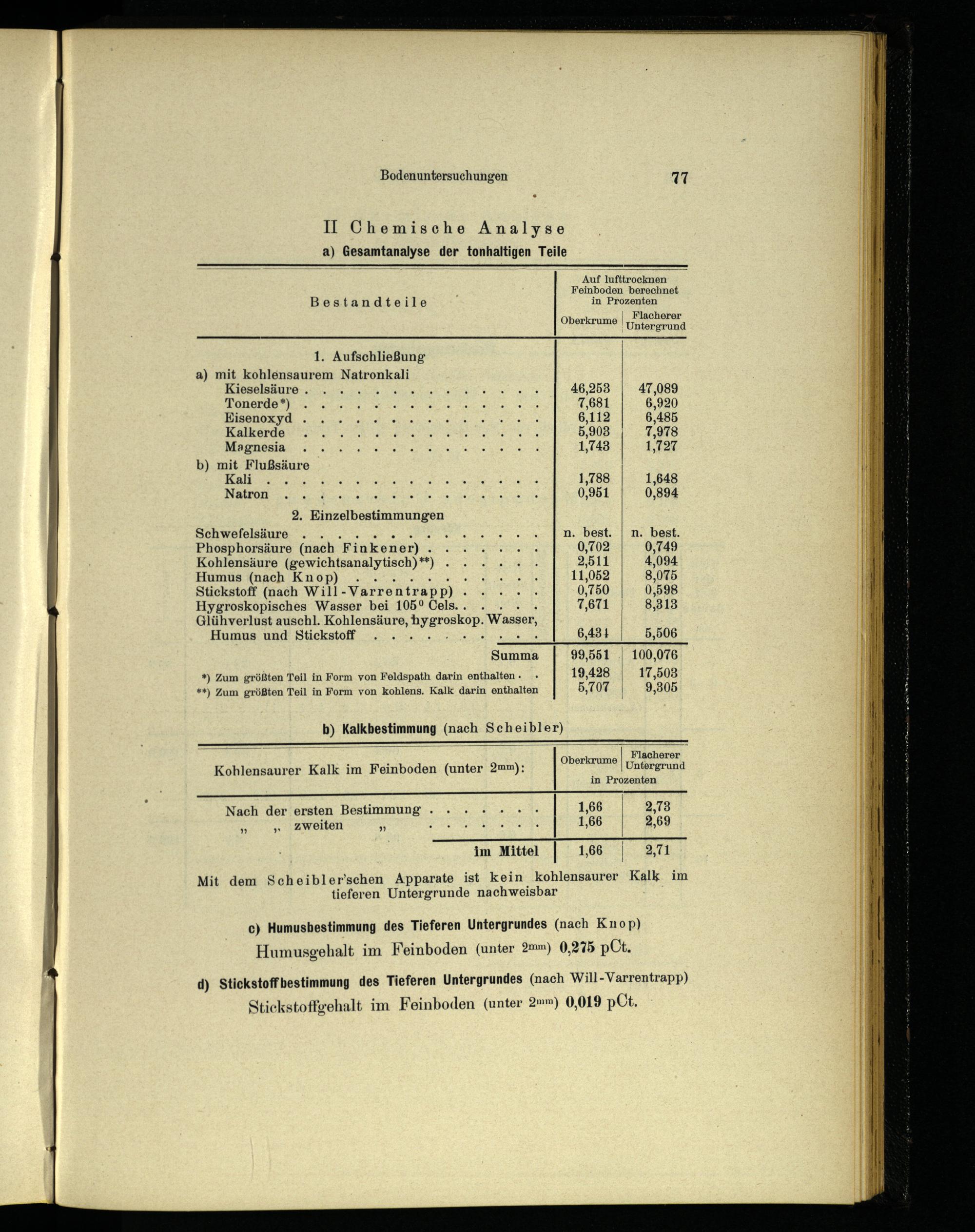 d) Stickstoffbestimmung des Tieferen Untergrundes(nach Will-Varrentrapp) Stickstoffgehalt im Feinboden(unter 2mm) 0,019 pCt.