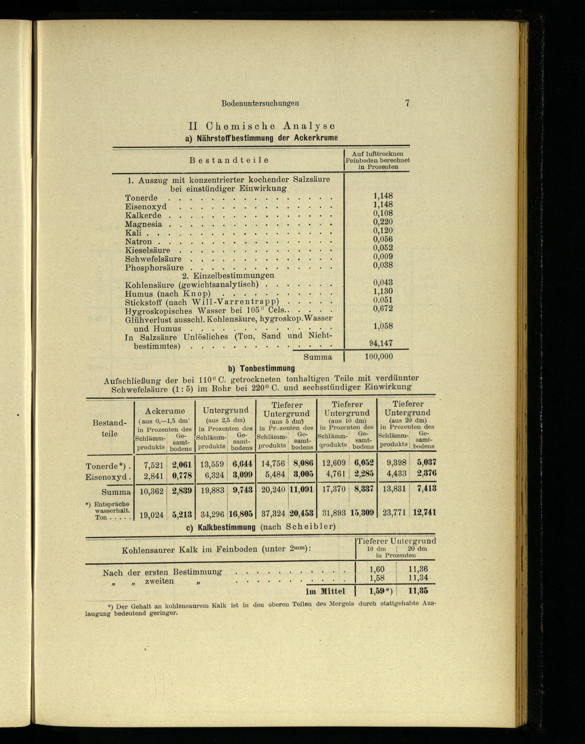 Tonerde*).| 7,521! 2,061| 18,559 6,644| 14,756 8,086| 12,609| 6,052] 9,398 5,087 Eisenoxyd.. 2,841 0,778| 6,324 3,099| 5,484 3,005| 4,761| 2,285| 4,433 2,376