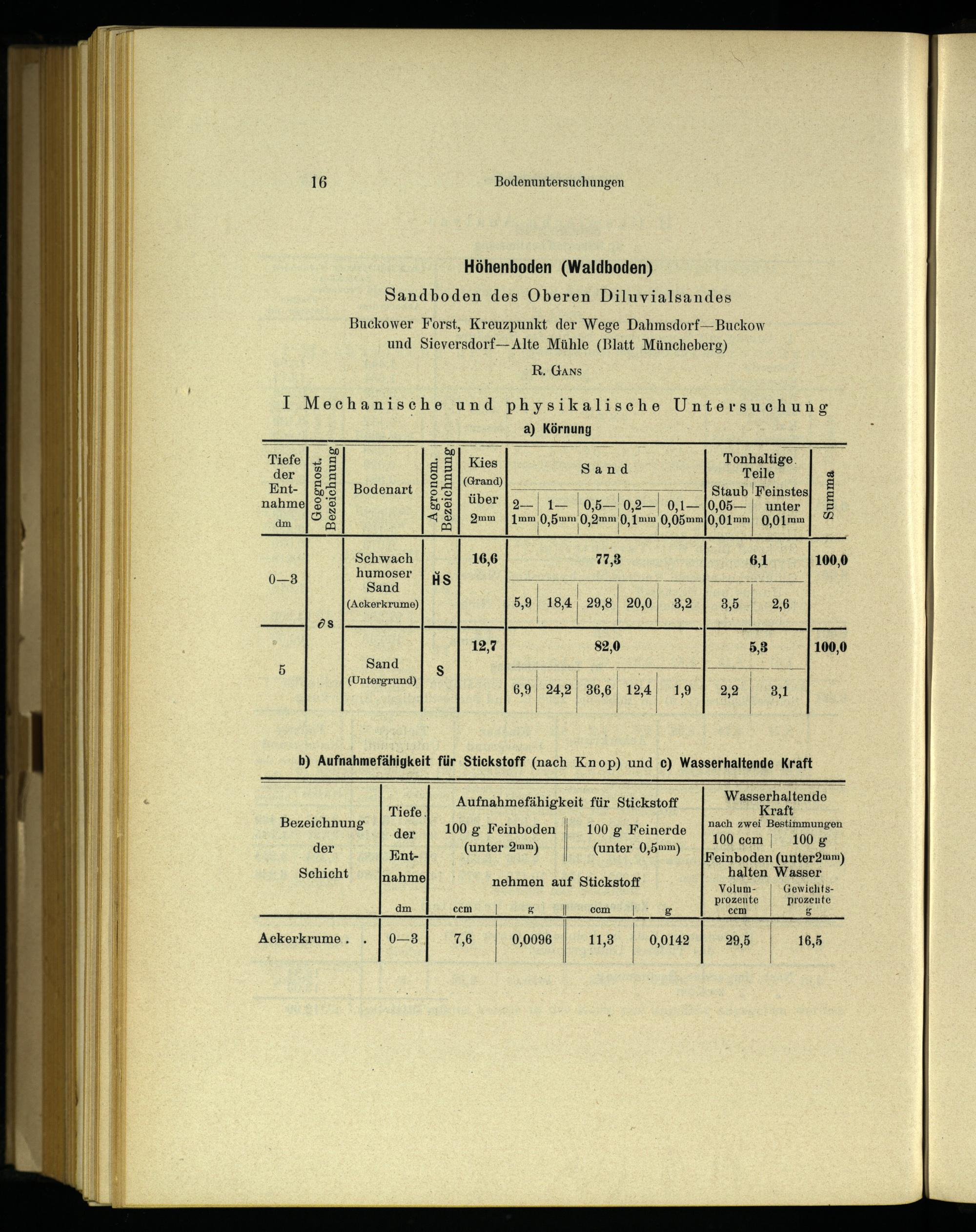 b) Aufnahmefähigkeit für Stickstoff(nach Knop) und c) Wasserhaltende Kraft
