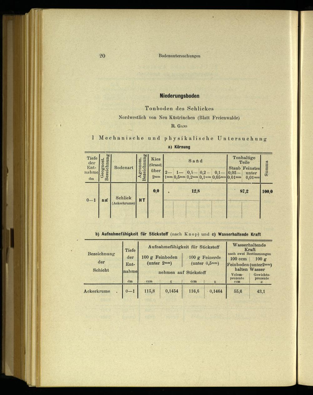 b) Aufnahmefähigkeit für Stickstoff(nach Knop) und c) Wasserhaltende Kraft