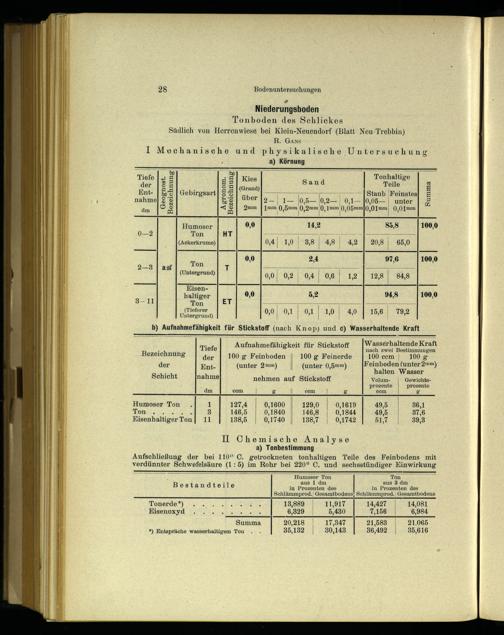 vr Niederungsboden Tonboden des Schlickes Südlich von Herrenwiese bei Klein-Neuendorf(Blatt Neu-Trebbin) R. Gans I Mechanische und physikalische Untersuchung a) Körnung