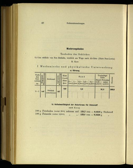 100 g Feinboden(unter 2mm) nehmen auf: 128,2 com= 0,1610 g Stickstoff 100 g Feinerde(unter 0,5mm) D»: 129,8 com= 0,1630 g 5