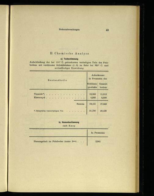 a) Tonbestimmung Aufschließung der bei 110° 0. getrockneten tonhaltigen Teile des Feinbodens mit verdünnter Schwefelsäure(1:5) im Rohr bei 220° C. und : scchsstündiger Einwirkung