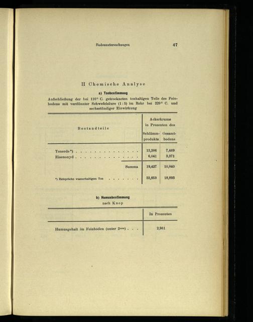 a) Tonbestimmuug Aufschließung der bei 110° C. getrockneten tonhaltigen Teile des Feinbodens mit verdünnter Schwefelsäure(1:5) im Rohr bei 220° C. und sechsstündiger Einwirkung