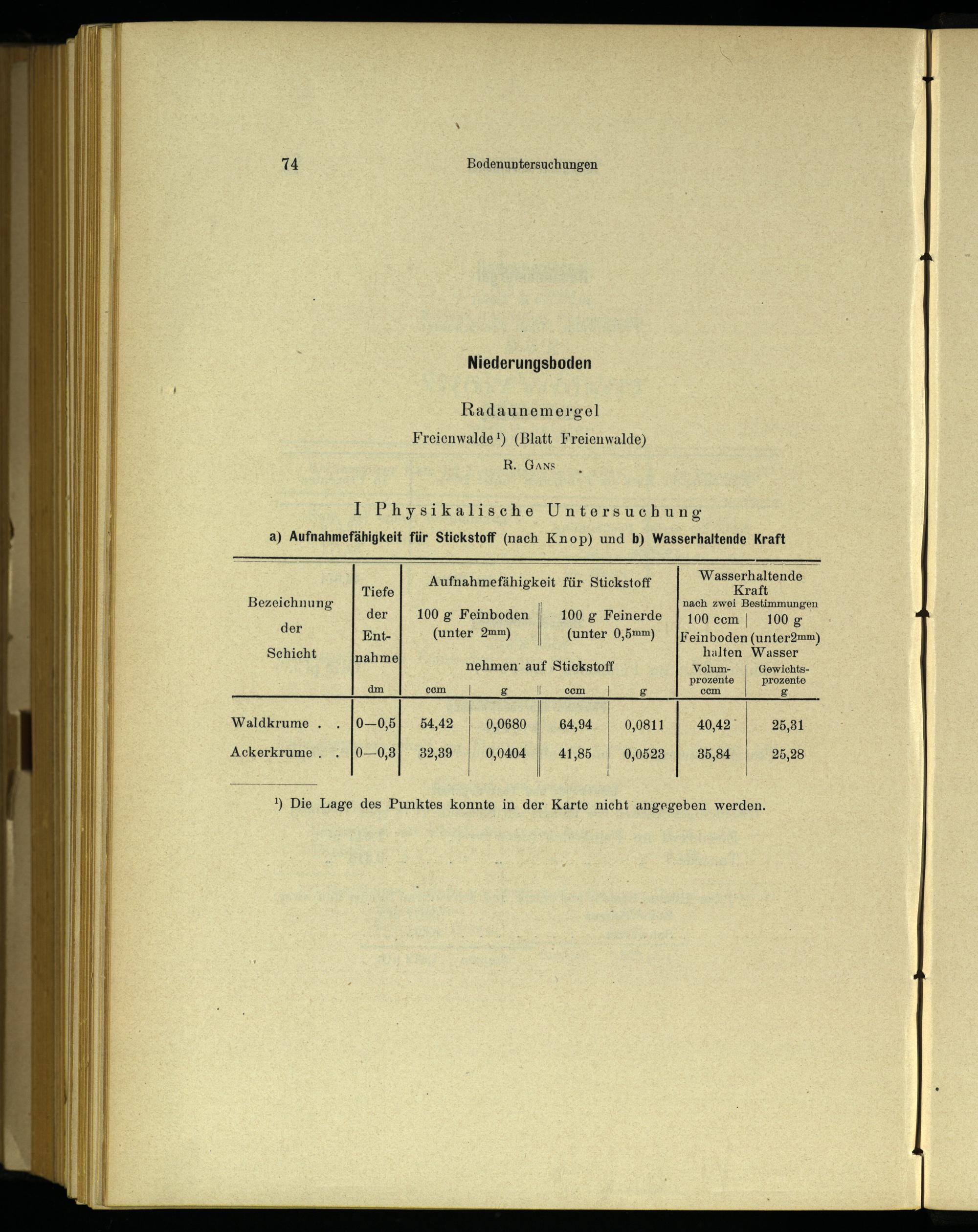 I] Physikalische Untersuchung a) Aufnahmefähigkeit für Stickstoff(nach Knop) und b) Wasserhaltende Kraft