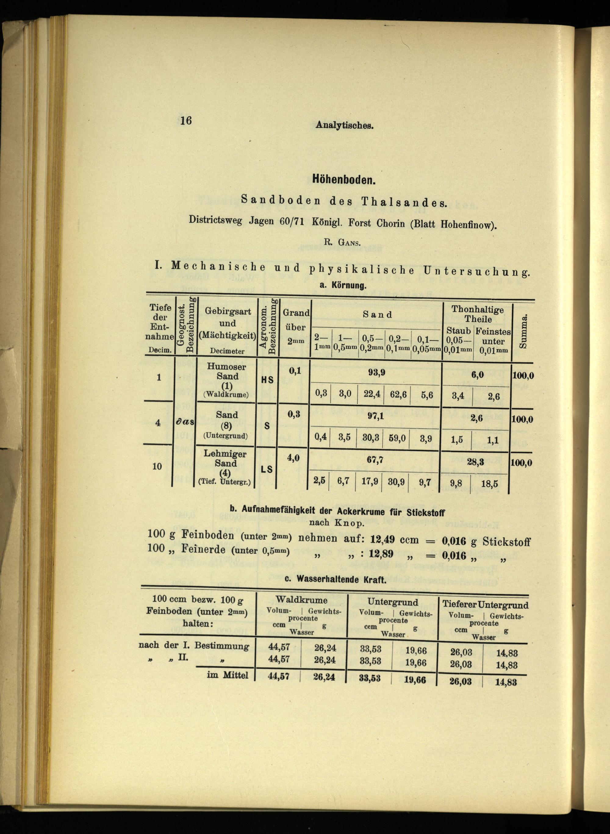 I. Mechanische und Physikalische Untersuchung. a. Körnung