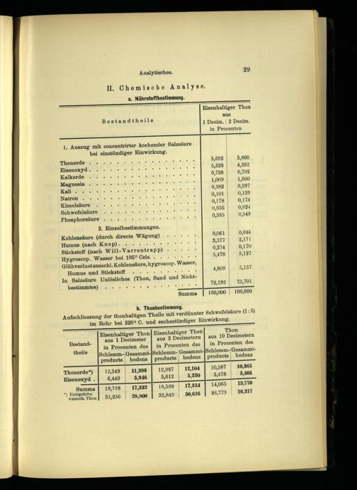 b. Thonbestimmung. Aufschliessung der thonhaltigen Theile mit verdünnter Schwefelsäure(1: 5) im Rohr bei 220° C. und sechsstündiger Einwirkung.