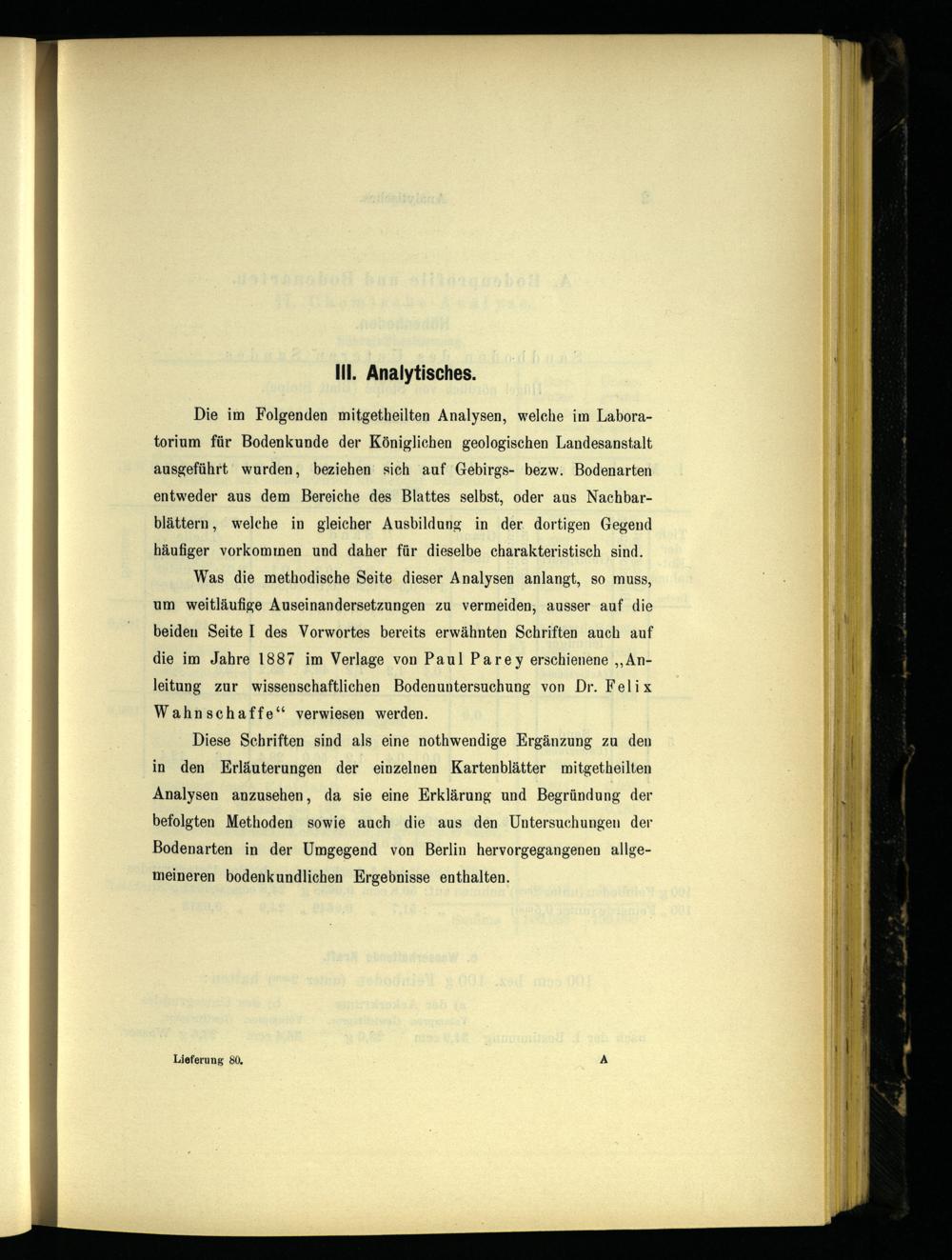 Diese Schriften sind als eine nothwendige Ergänzung zu den in den Erläuterungen der einzelnen Kartenblätter mitgetheilten Analysen anzusehen, da sie eine Erklärung und Begründung der befolgten Methoden sowie auch die aus den Untersuchungen der Bodenarten in der Umgegend von Berlin hervorgegangenen allge