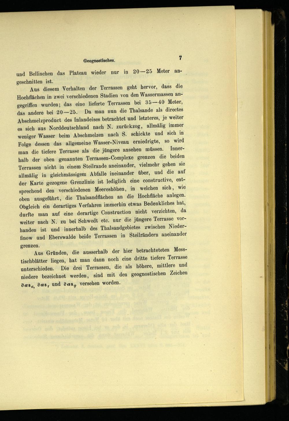 Aus Gründen, die ausserhalb der hier betrachteteten Messtischblätter liegen, hat man dann noch eine dritte tiefere Terrasse unterschieden. Die drei Terrassen, die als höhere, mittlere und niedere bezeichnet werden, sind mit den geognostischen Zeichen dass, das, und das, versehen worden.