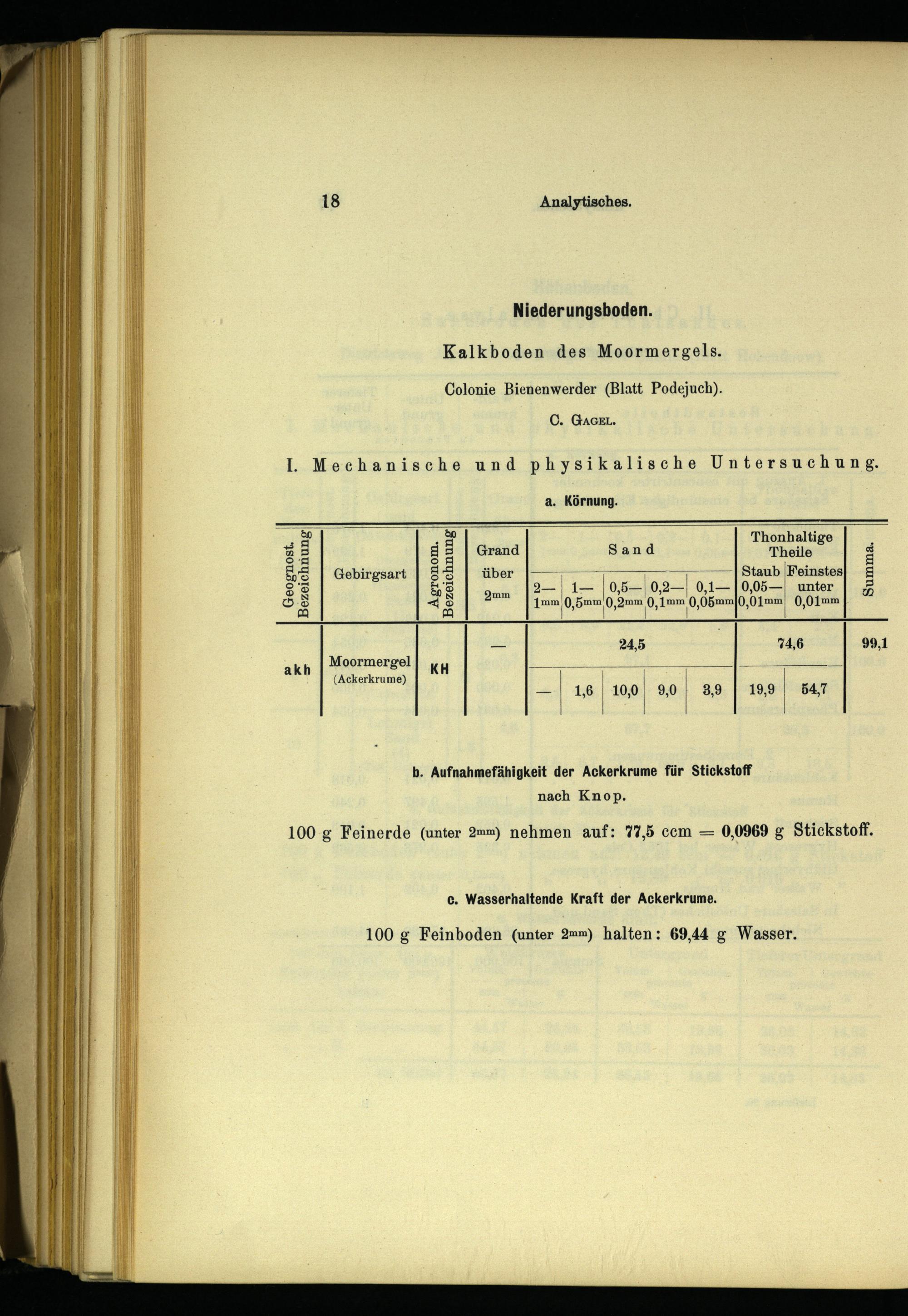 100 g Feinerde(unter 2mm) nehmen auf: 77,5 ccm= 0,0969 g Stickstoff.