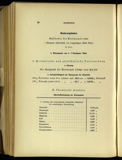 b. Aufnahmefähigkeit der Wiesennarbe für Stickstoff, 100 g Feinboden(unter 2mm) nehmen auf: 59,9 ccm= 0,0%52 g Stickstoff 100 ,, Feinerde(unter 0,5mm)»„31.617„„=— 0,0775,»