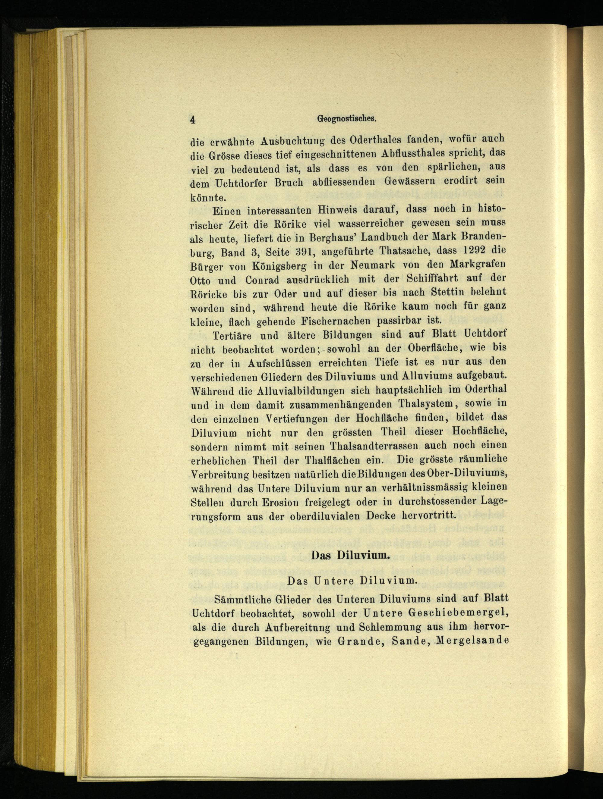 die erwähnte Ausbuchtung des Oderthales fanden, wofür auch die Grösse dieses tief eingeschnittenen Abflussthales spricht, das viel zu bedeutend ist, als dass es von den spärlichen, aus dem. Uchtdorfer Bruch abfliessenden Gewässern erodirt sein könnte.