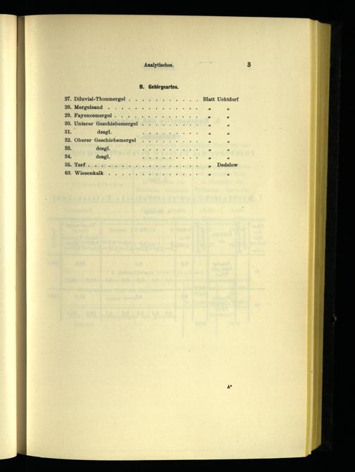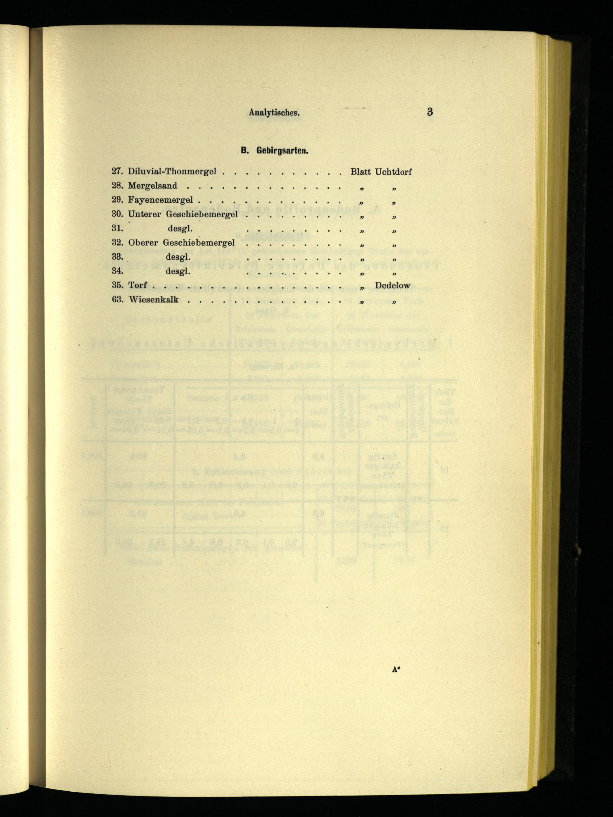 Analytisches. B. Gebirgsarten. ‚ Diluvial-Thonmergel........,. Blatt Uchtdorf . Mergelsand »» . Fayencemergel. »” . Unterer Geschiebemergel. »” desgl. ” . Oberer Geschiebemergel » desgl. ” desgl. » . TO el nie Dedelow . Wiesenkalk »