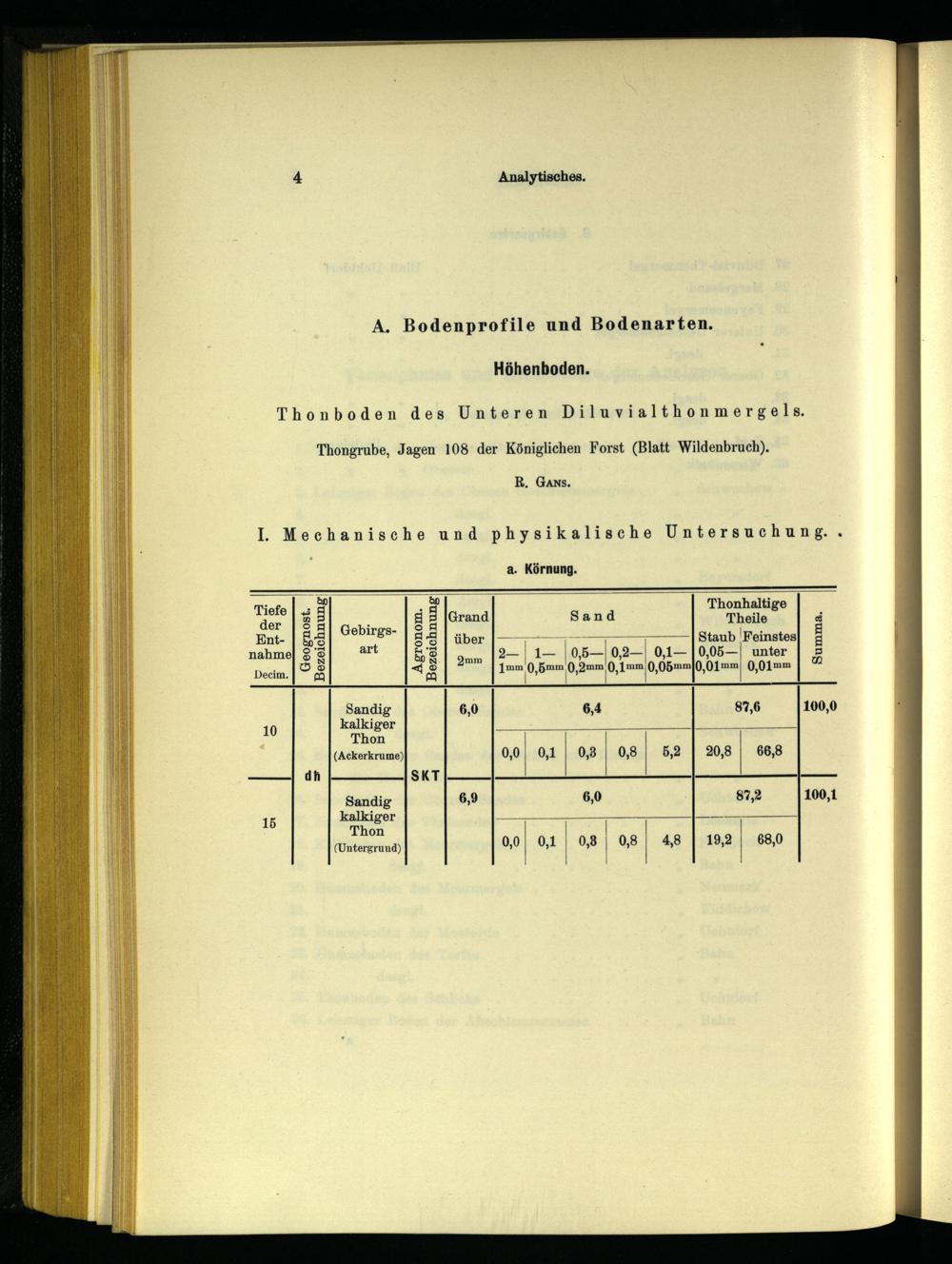 A. Bodenprofile und Bodenarten. Höhenboden.