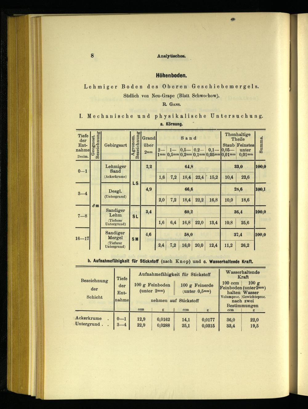 I. Mechanische und physikalische Untersuchung. a. Körnung.