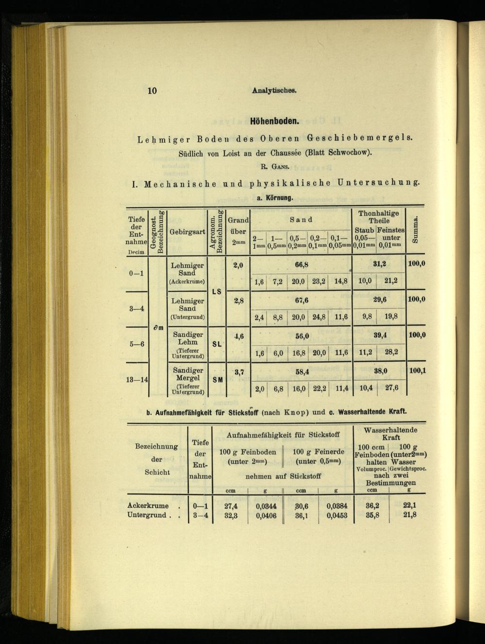 b. Aufnahmefähigkeit für Stickstoff(nach Knop) und c. Wasserhaltende Kraft.