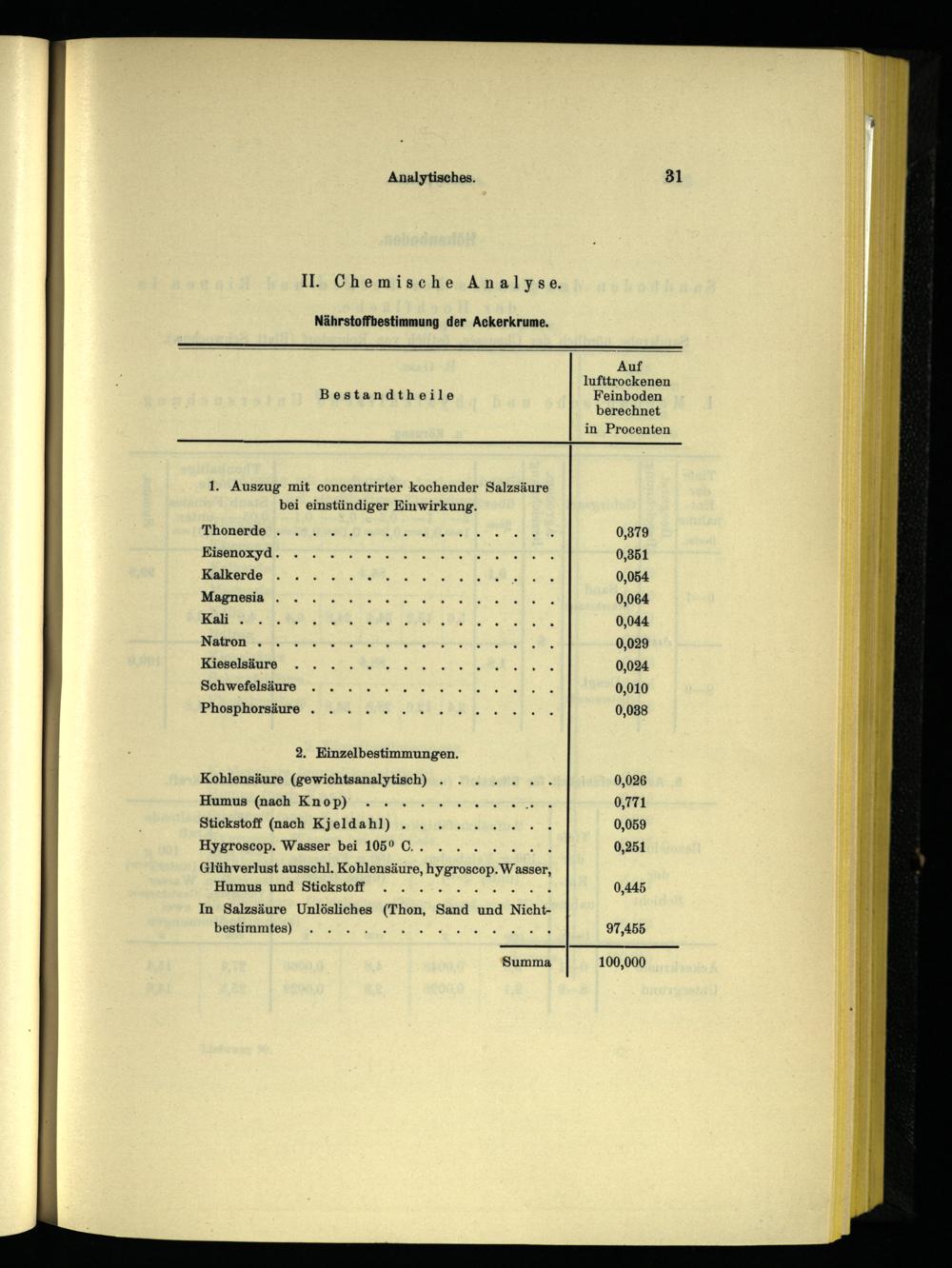 Glühverlust ausschl. Kohlensäure, hygroscop. Wasser, Humus und Stickstoff