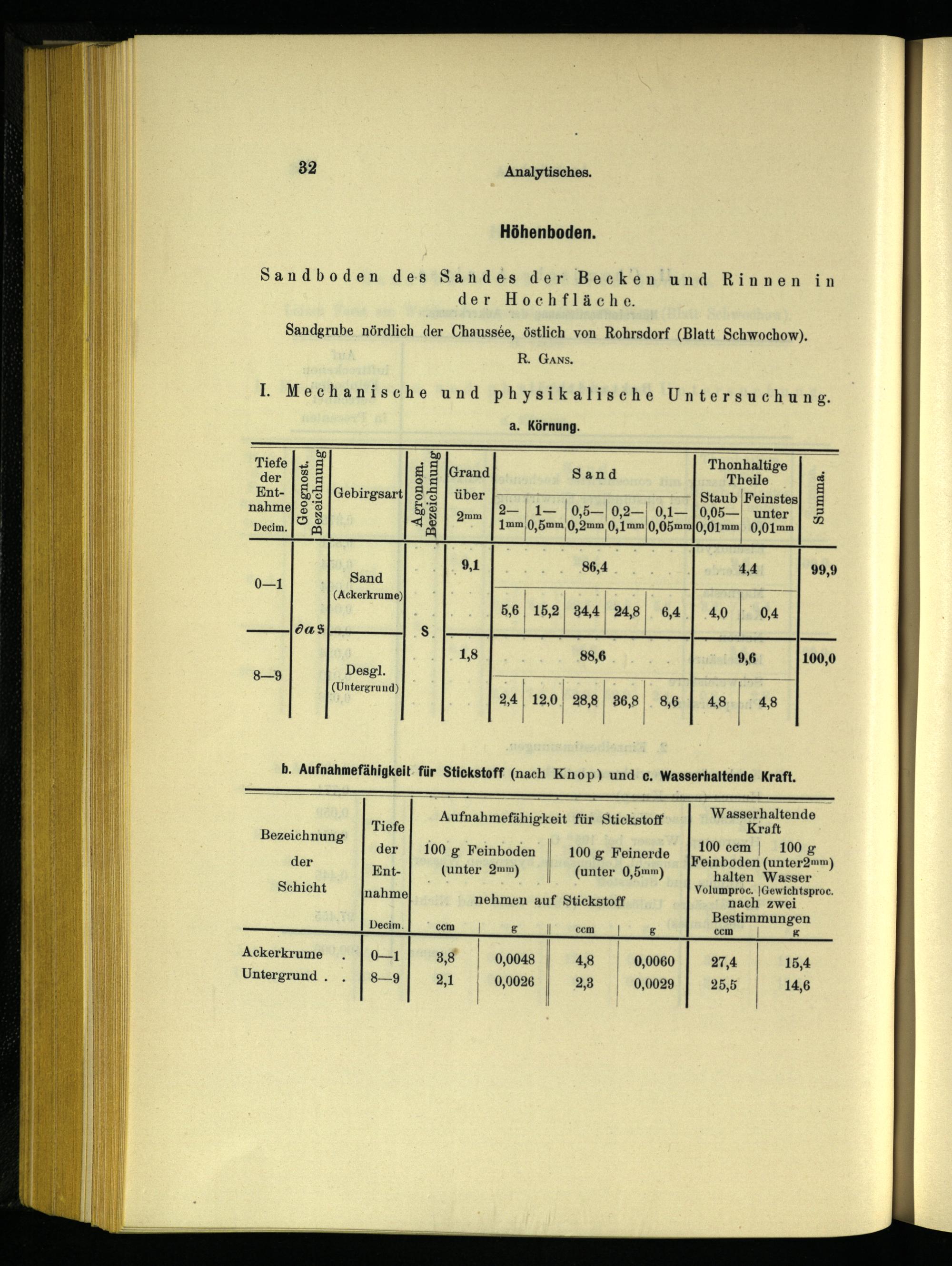 b. Aufnahmefähigkeit. für Stickstoff(nach Knop) und c, Wasserhaltende Kraft.