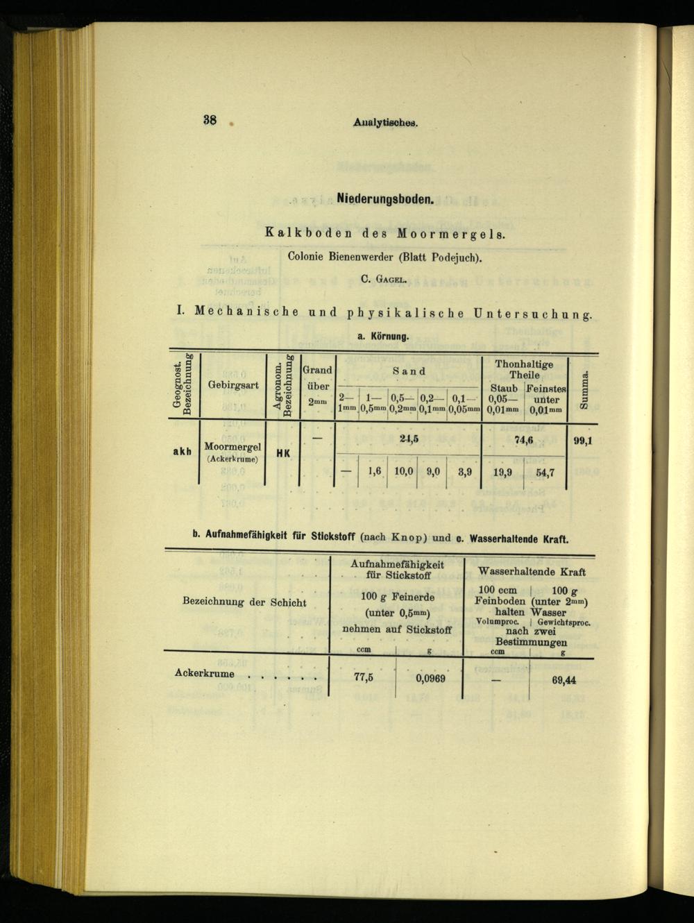 100 g Feinerde Feinboden(unter 2mm) halten Wasser (unter 0,5»m) Volumproc.| Gewichtsproc. nehmen auf Stickstoff nach zwei Bestimmungen ccm| g