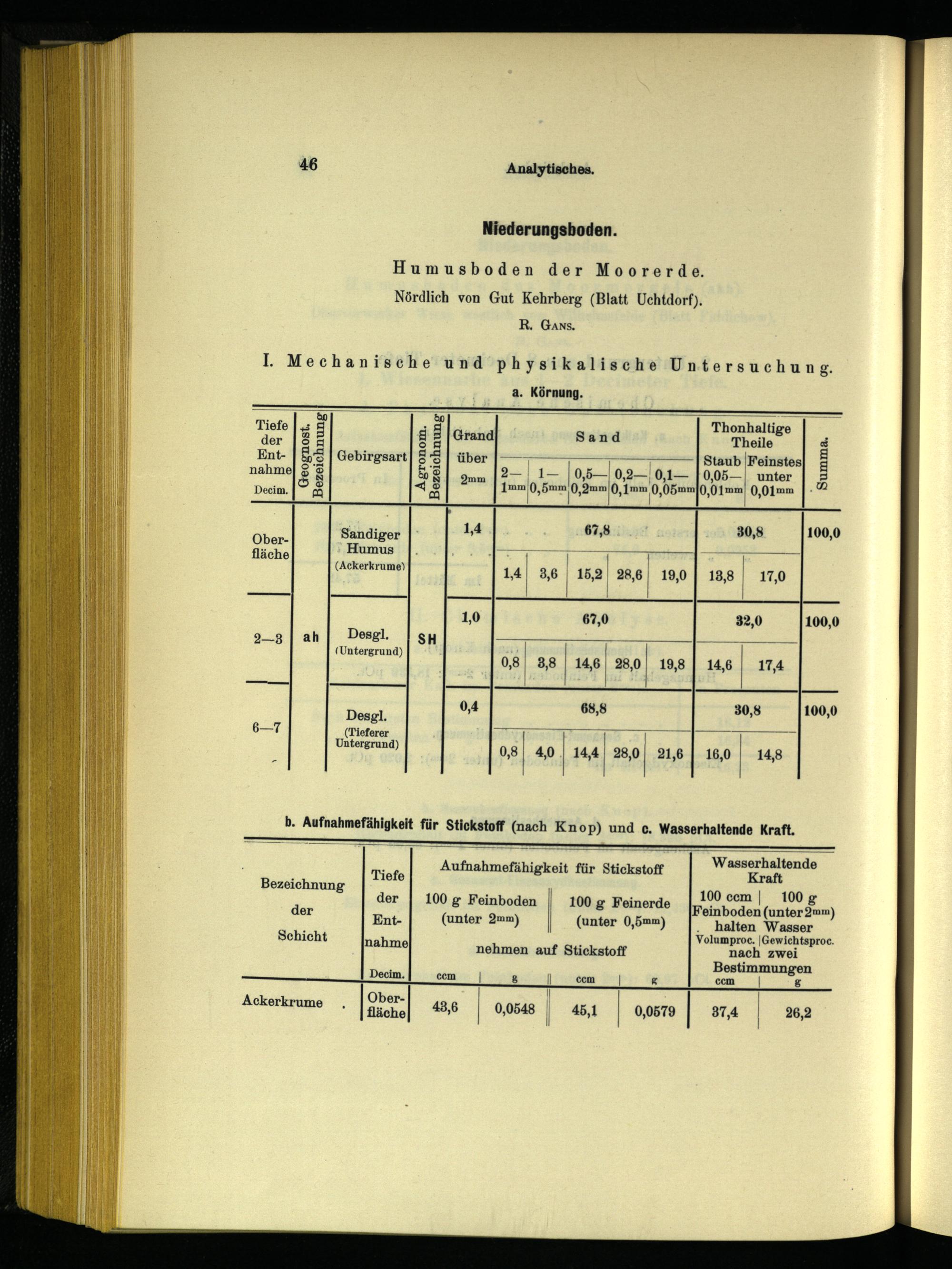 b. Aufnahmefähigkeit für Stickstoff(nach Knop) und c. Wasserhaltende Kraft.
