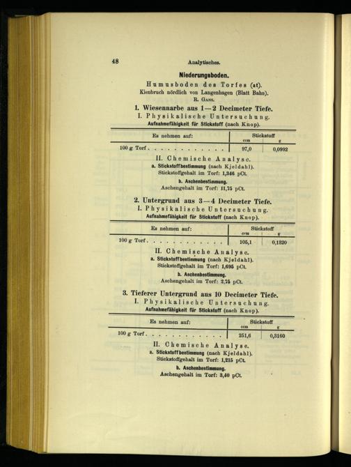 ccm| g RA ei dia 105,1-| 0,1820 I. Chemische Analyse. a. Stickstoffbestimmung(nach K'j eldahl). Stickstoffgehalt im Torf: 1,695 pCt.
