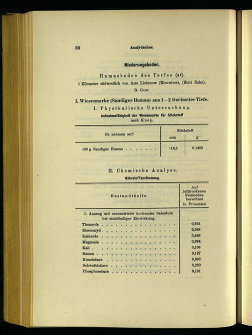 1. Wiesennarbe(Sandiger Humus) aus 1—2 Decimeter Tiefe, Il. Physikalische Untersuchung.