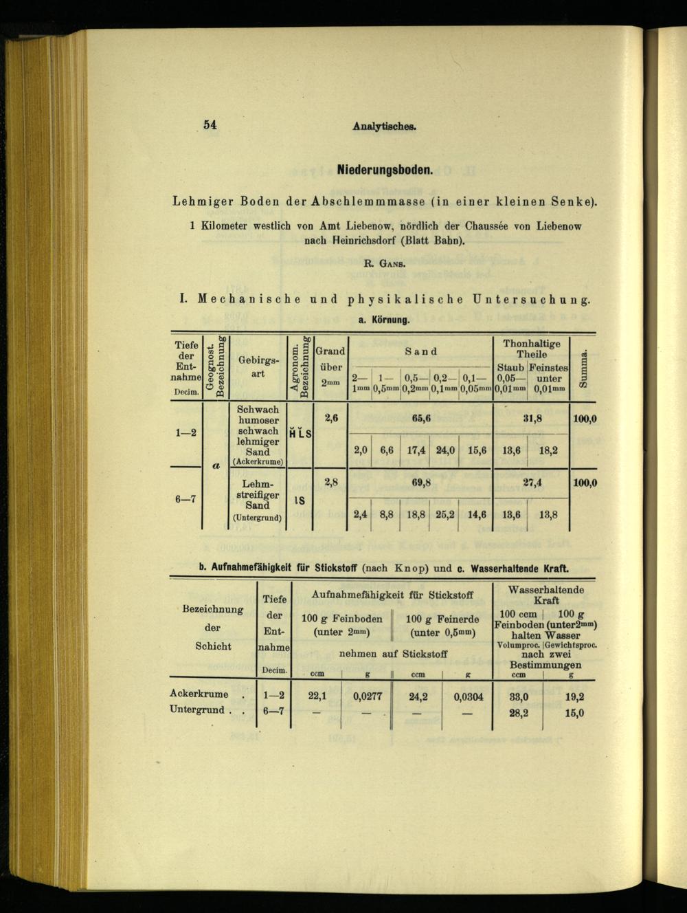 der(unter 2mm)(unter 0,5mm) halten Wasser Schich Volumproc.|Gewichtsproc. chicht nehmen auf Stickstoff nach zwei Bestimmungen ||